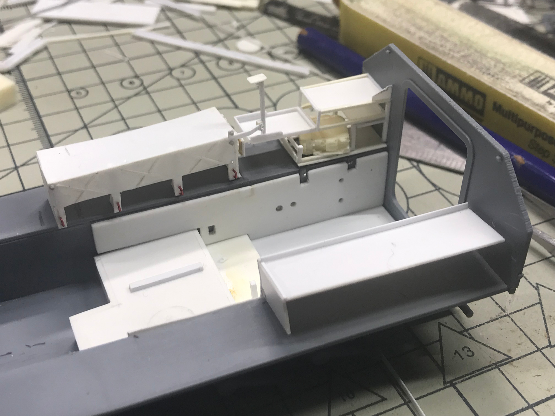 That’s a good start mate, I especially like the seat. Spent far too much time bouncing around on that uncomfortable contraption in Spartans and Strikers. I would imagine that SMM’s CVR(T) drivers compartment interior wouldn’t be hard to fit. Really only the battery boxes and batteries to be added for the instrument panel to sit on top.