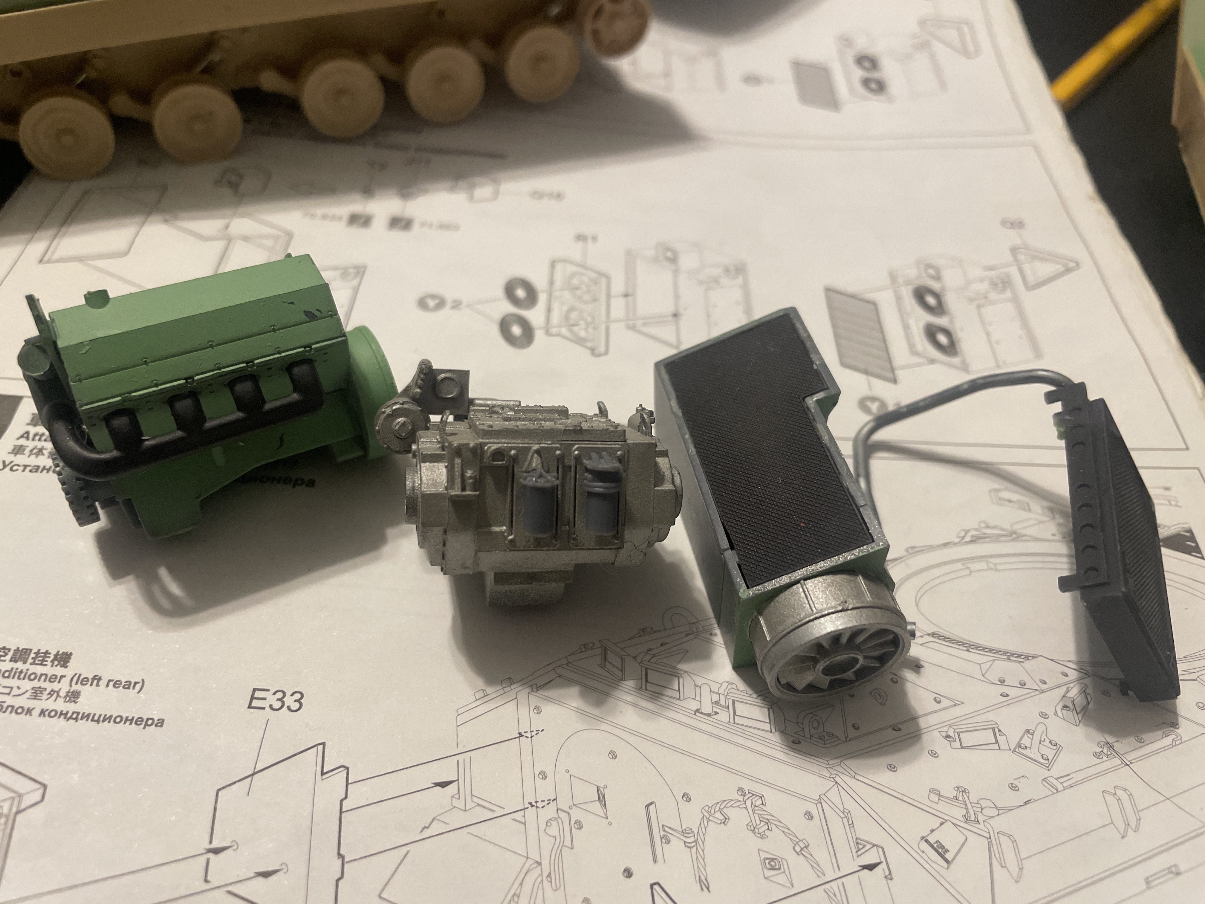 I’m trying to finish up a build of mengs m2a3. I can’t find any decent pictures of the engine parts and I’m hoping you guys can help…. This is what i have so far