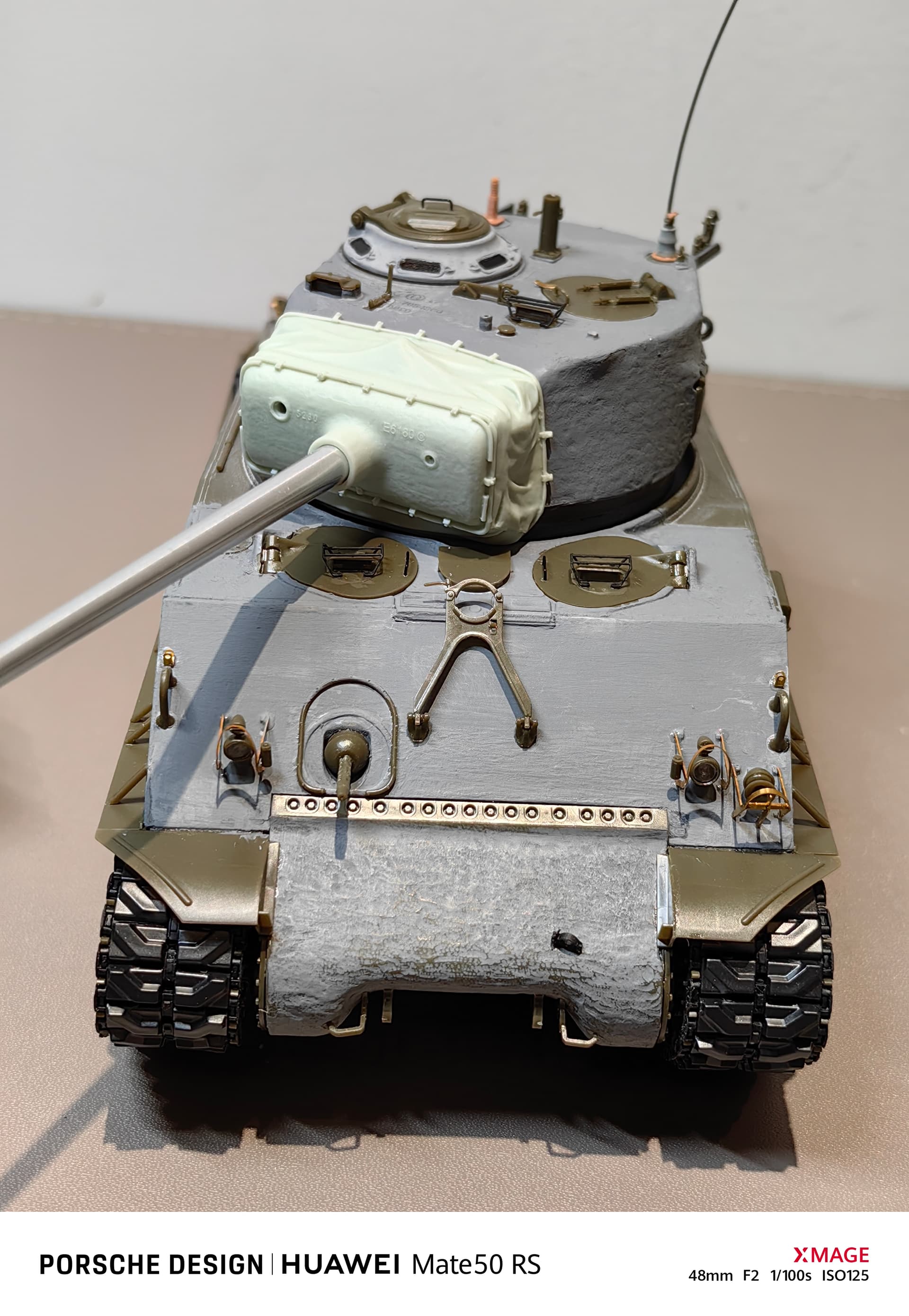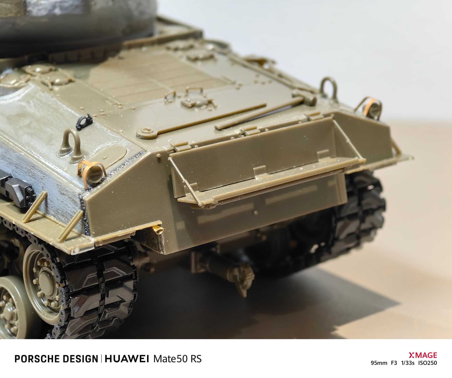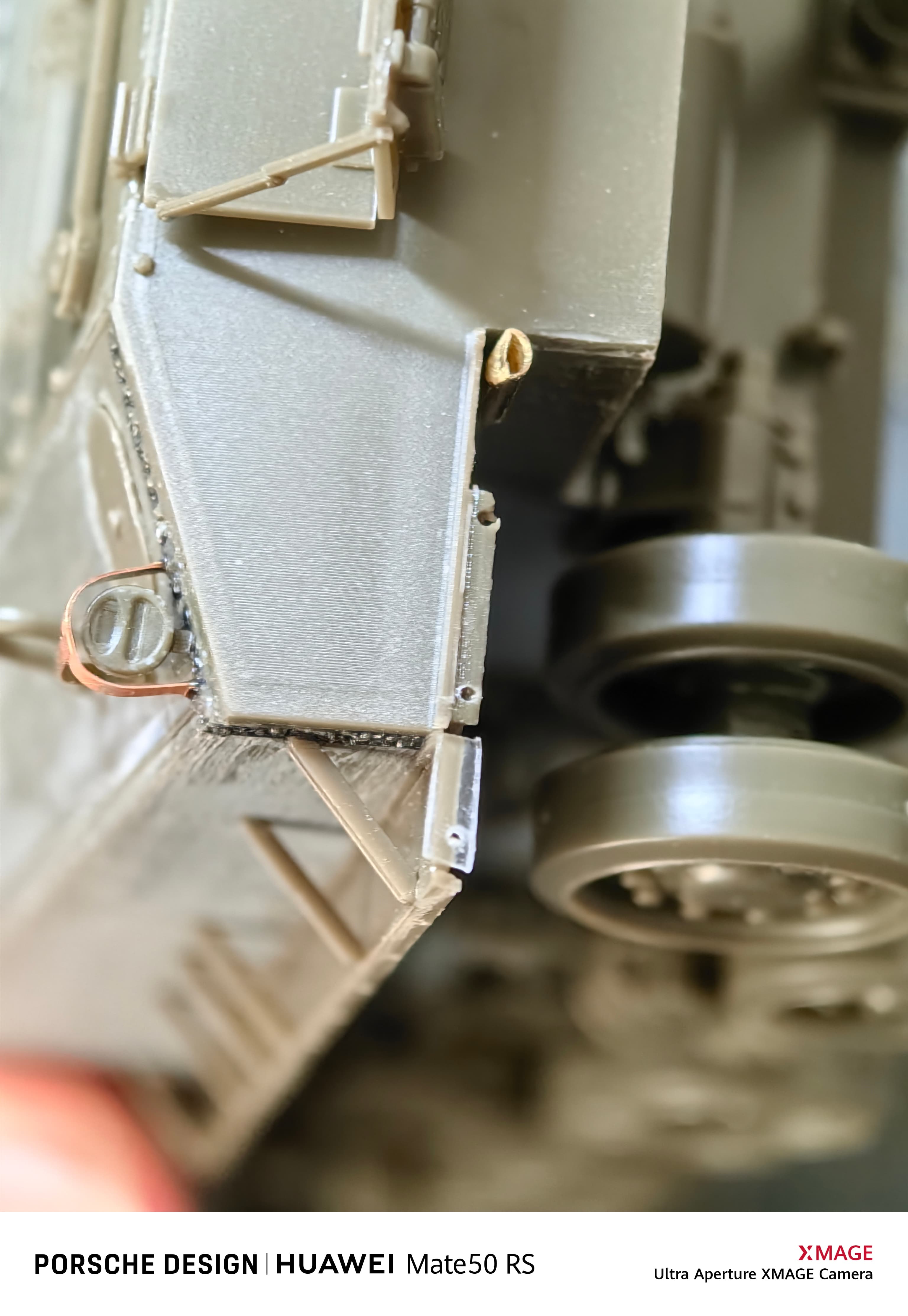 The current phase has reached the stage of preparing for spraying, except for the rear exhaust deflectors that has not been completed, the other parts have almost been modified and assembled. Now I take some photos of the whole tank as a record before spraying phase.