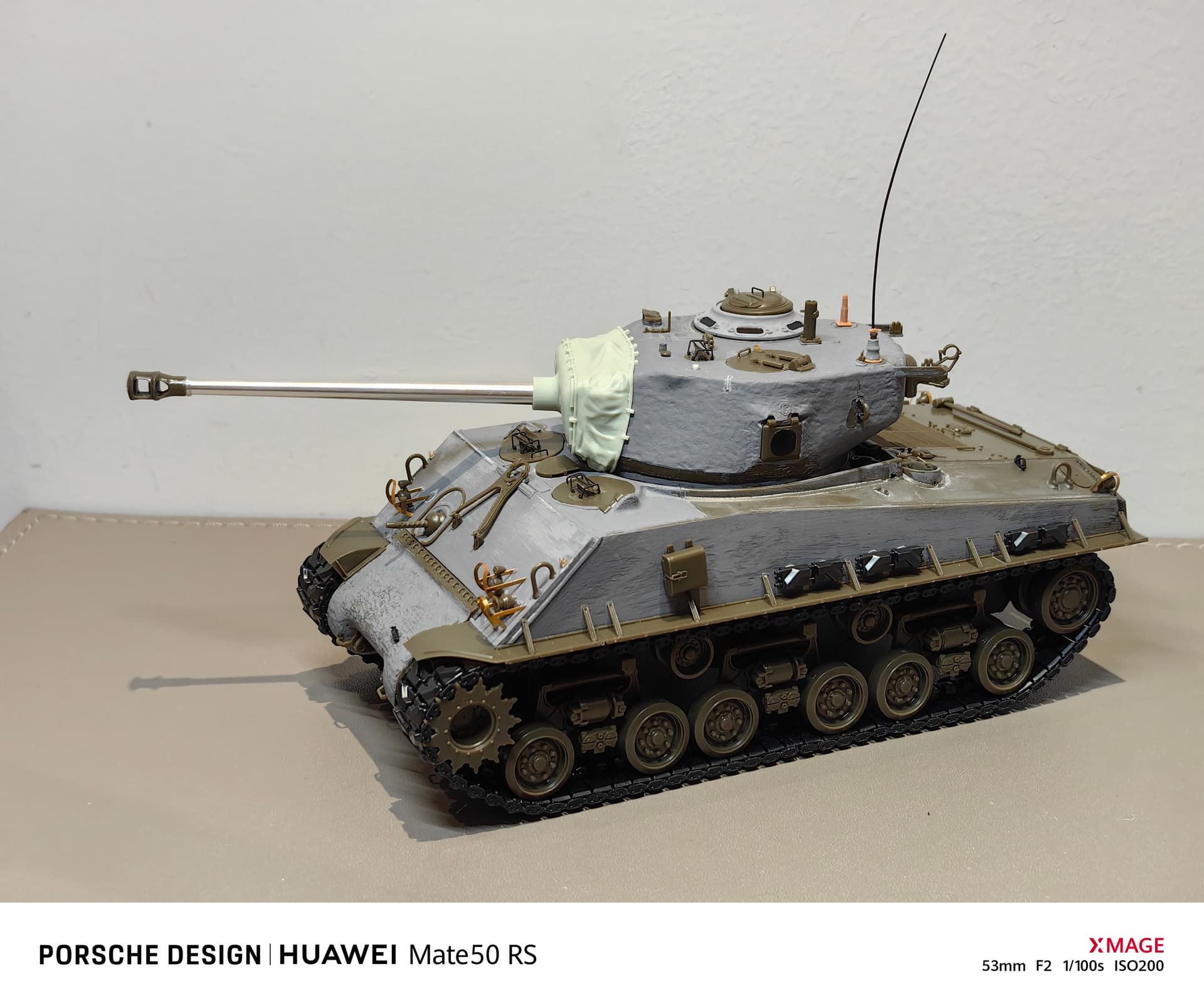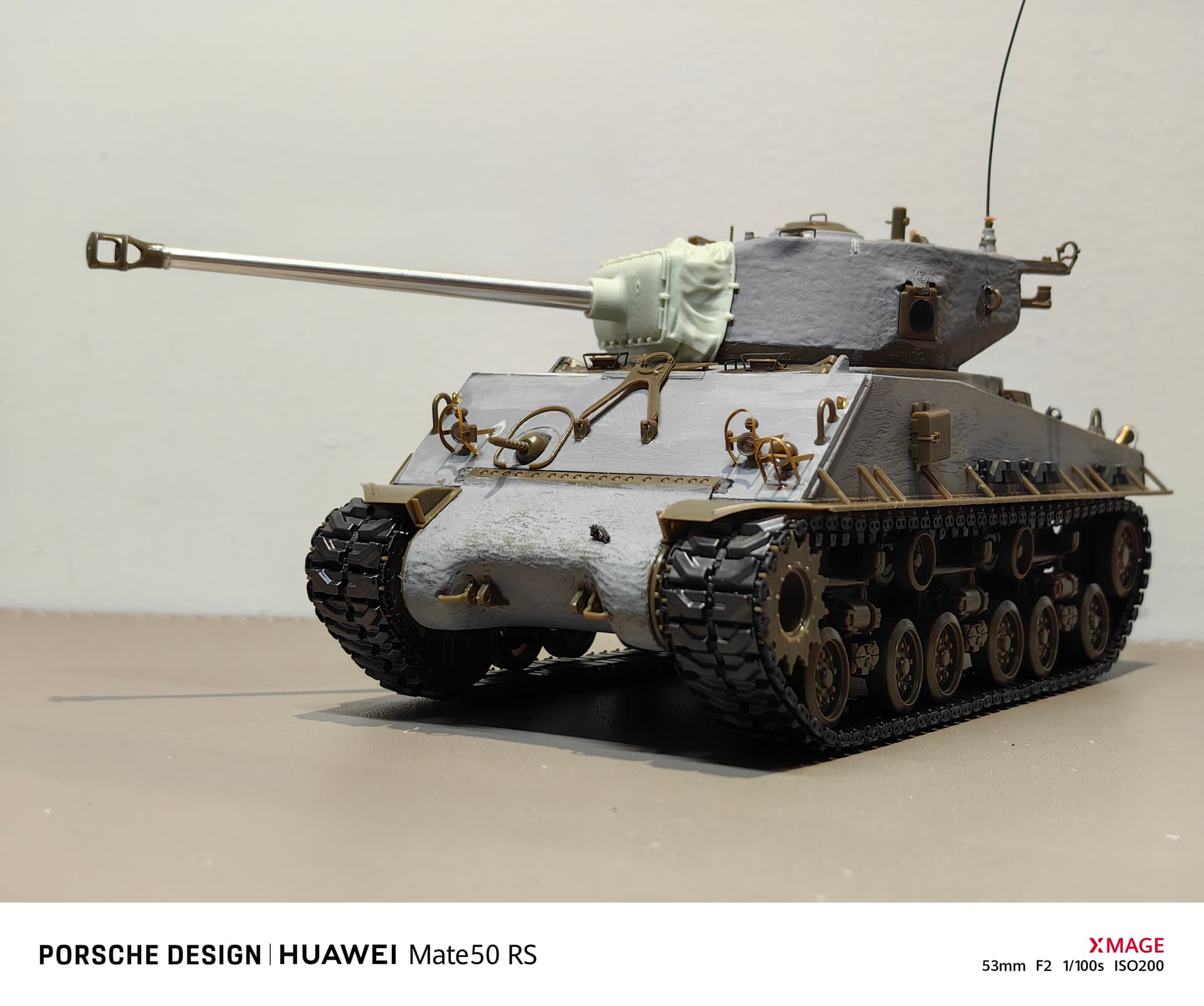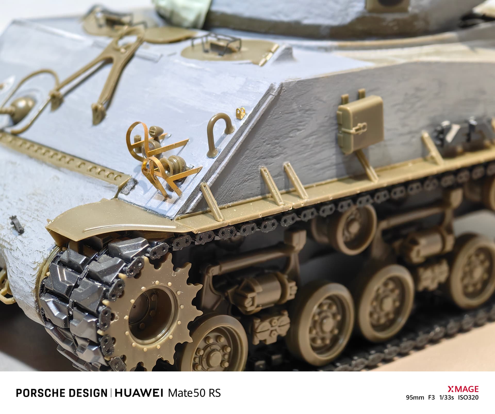 The current phase has reached the stage of preparing for spraying, except for the rear exhaust deflectors that has not been completed, the other parts have almost been modified and assembled. Now I take some photos of the whole tank as a record before spraying phase.