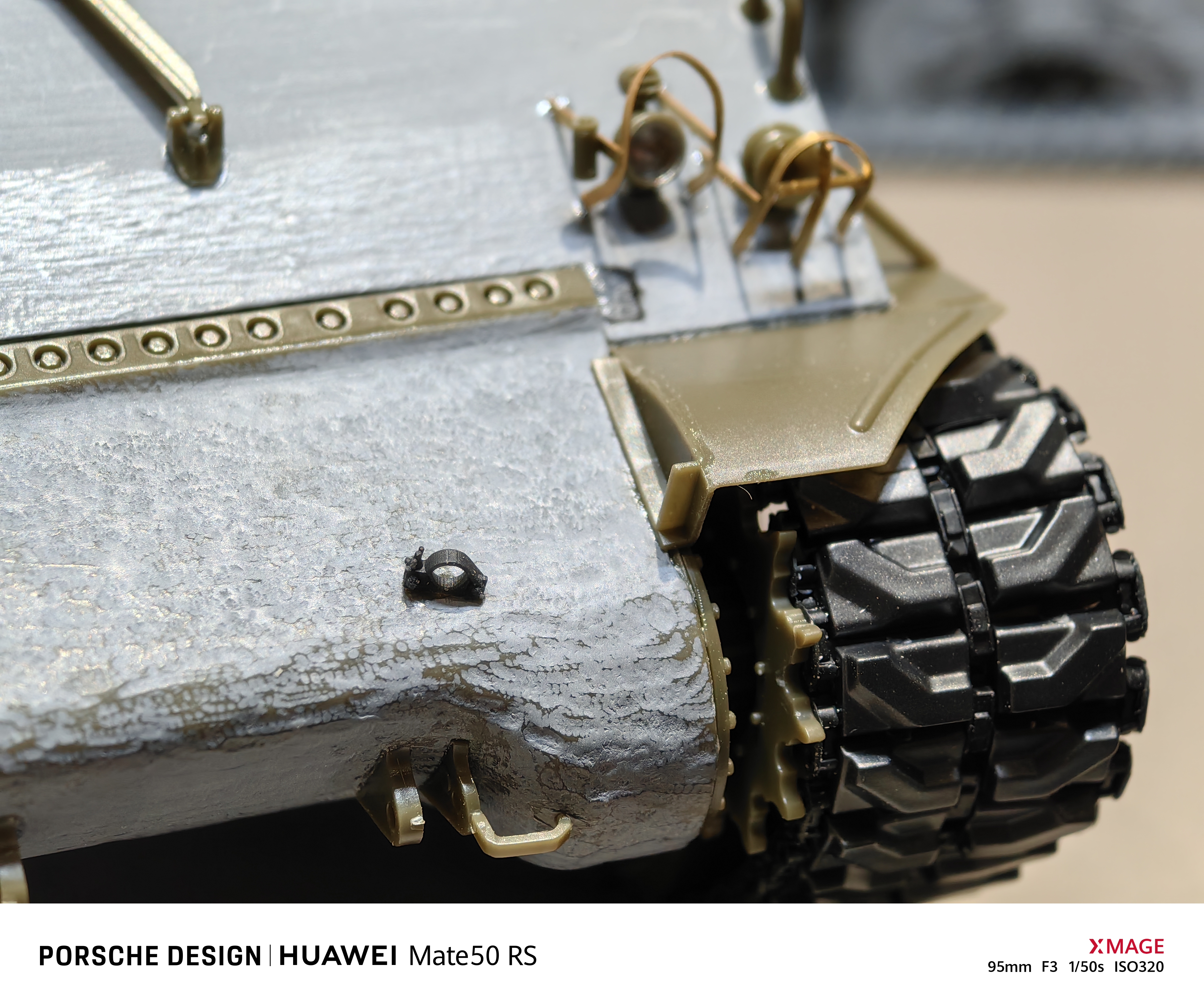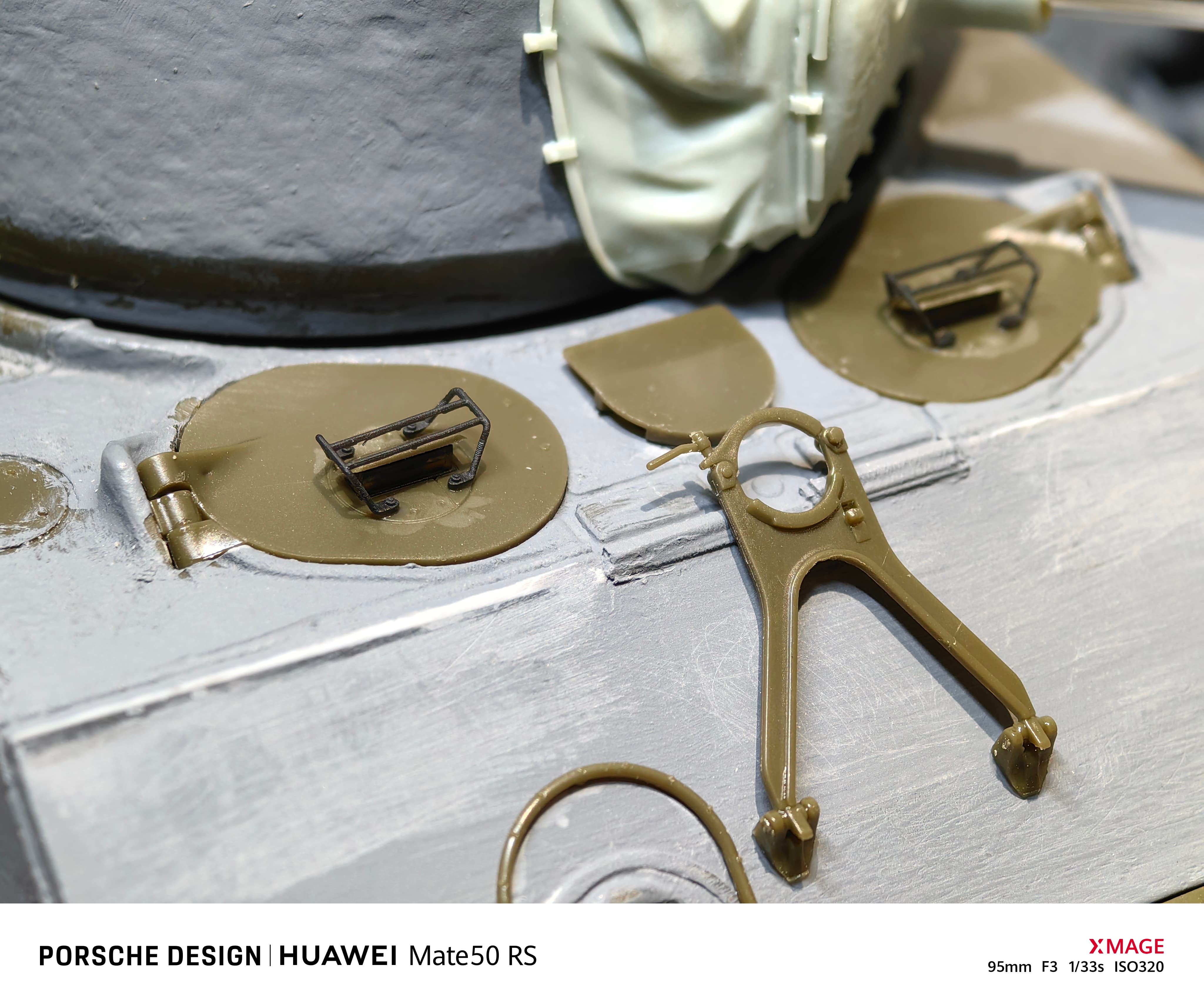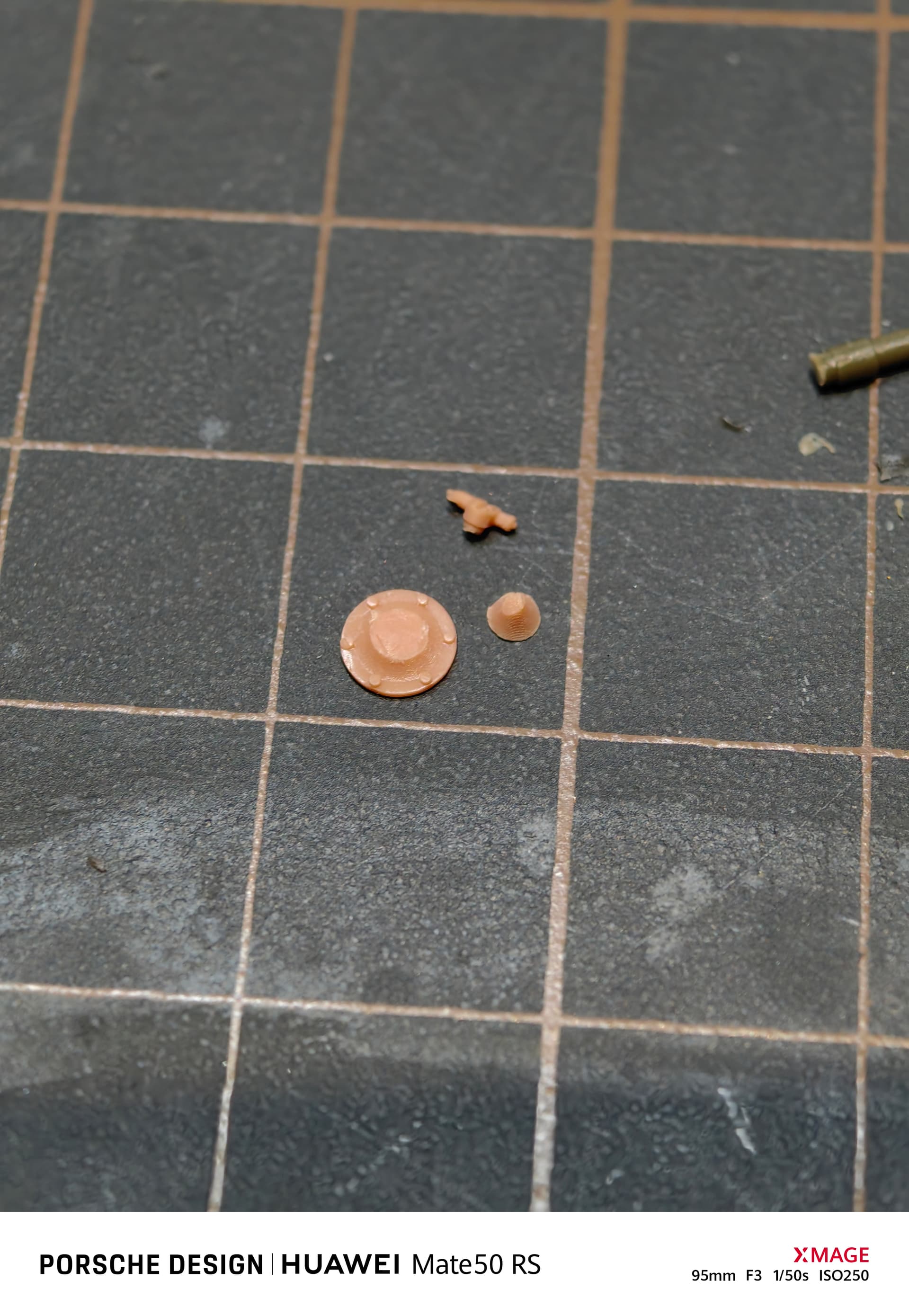 In these days, I am slowly checking the photos of real tank to correct the details. Including the periscope guards, the tail tube, the rear fender and the antenna base. For the periscope guards, I used a TREX 3D printed set because it is thin enough and the cross section is round rather than the wrong rectangle like PE. These periscope guards are very thin and need to be removed and installed with great care. The other part of the set is the fastening of the steel cable. According to the history photos, there was no steel cable installed, so I glued these two fastening devices directly.
