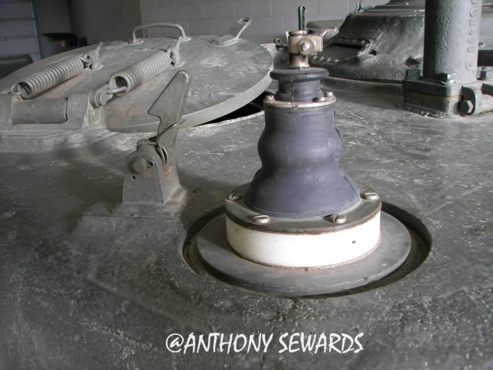 That is indeed what it is Ken, the exhaust for a one cylinder Briggs & Stratton “pony engine” hooked to a generator to power radio and turret traverse when the engine was off. Now known as the APU.