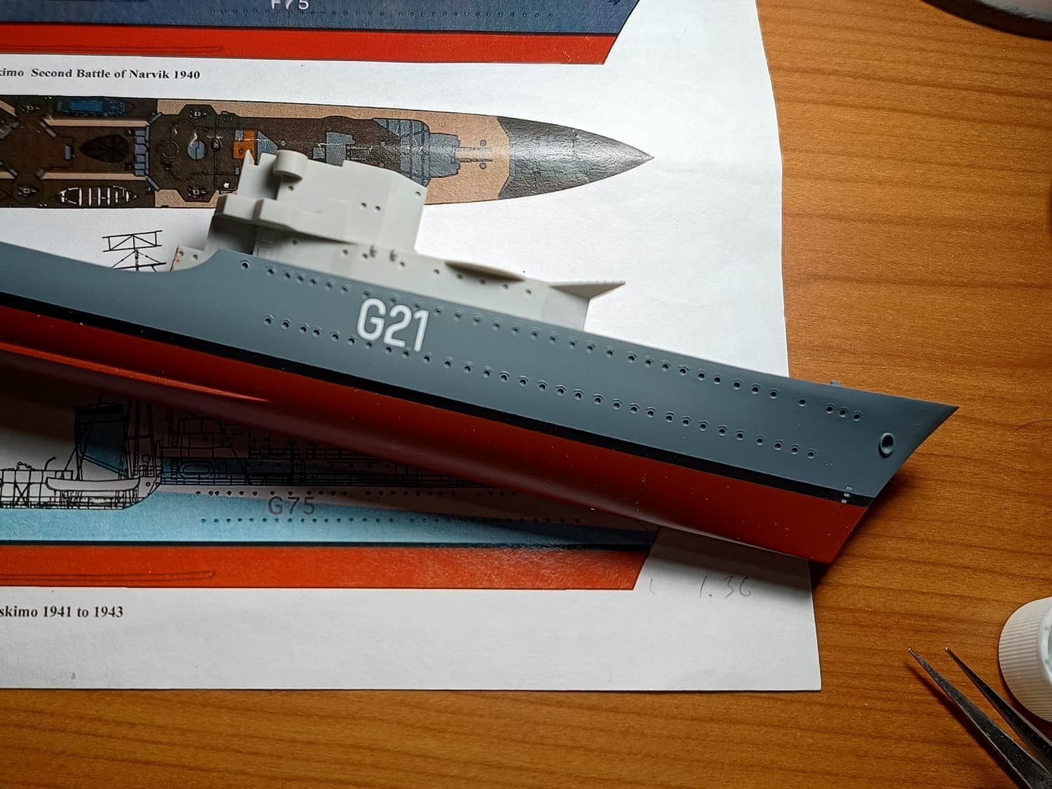I’ve applied the clear gloss coat on the hull and am now thinking about adding hull numbers and draught markings. I’ve been considering utilizing Starling Models decals for this.