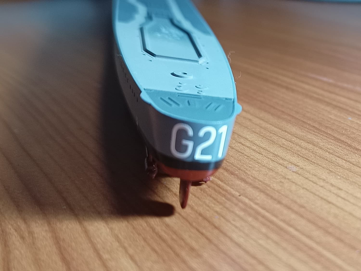 I think I need to head back to the spray booth, erase the large codes on the stern and replace them with smaller ones…
