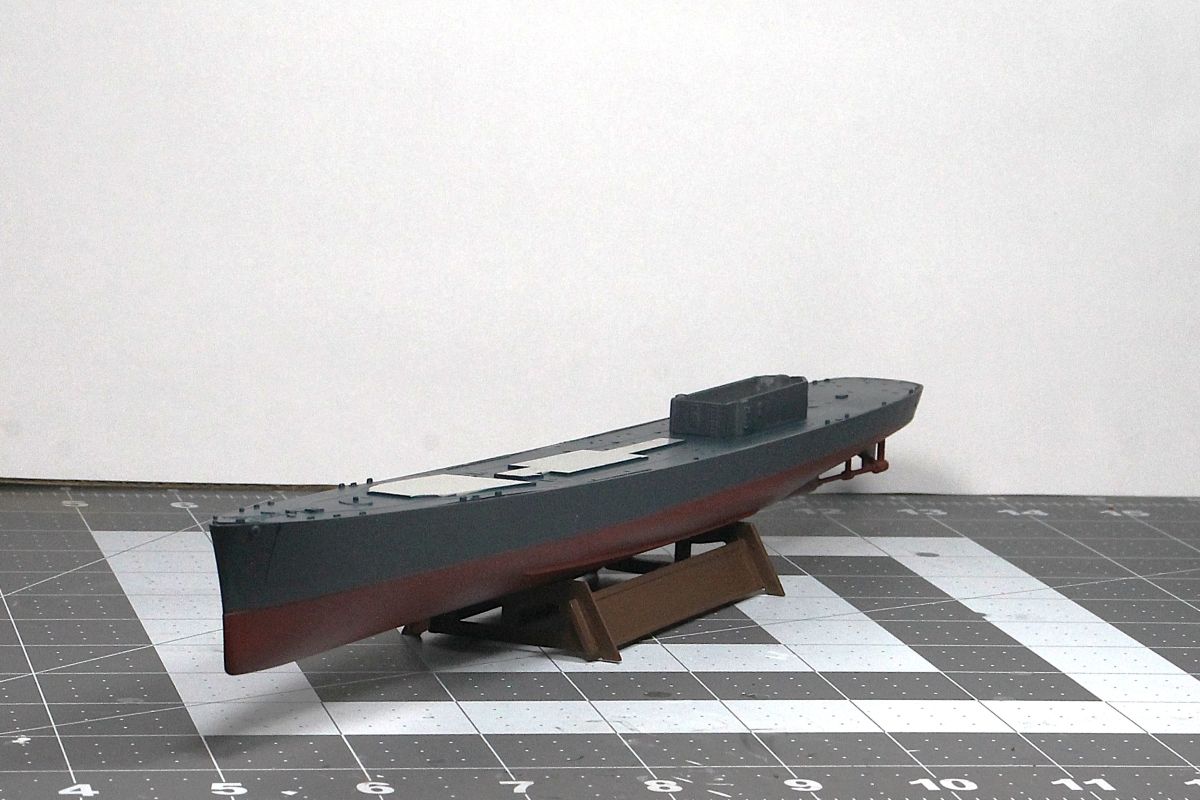 This is the ship after it’s commissioning in 1943 and my start showing the hull with propellor shafts and scratch built sonar dome.