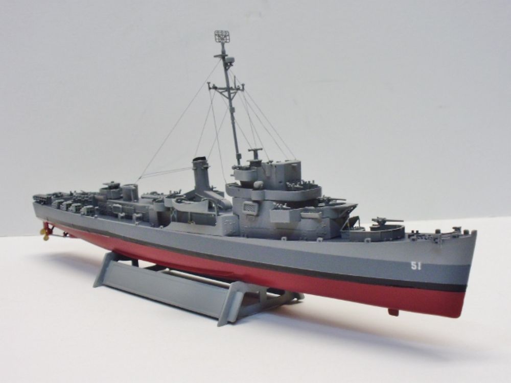 NICE build! My big beef with Trumpeter is the the 5 inch gun turrets are missing the triangular piece on the “back wall”. I still have to order PE rails and stripe decals to do the boot on the hull. I have a liking for the Buckley, DE-51. Have built the Trumpeter 1/350 and Revell 1/249 kits. Here is Trumpeter one. Have been eyeing up the old Arizona by Revell lately…..always liked that kit.