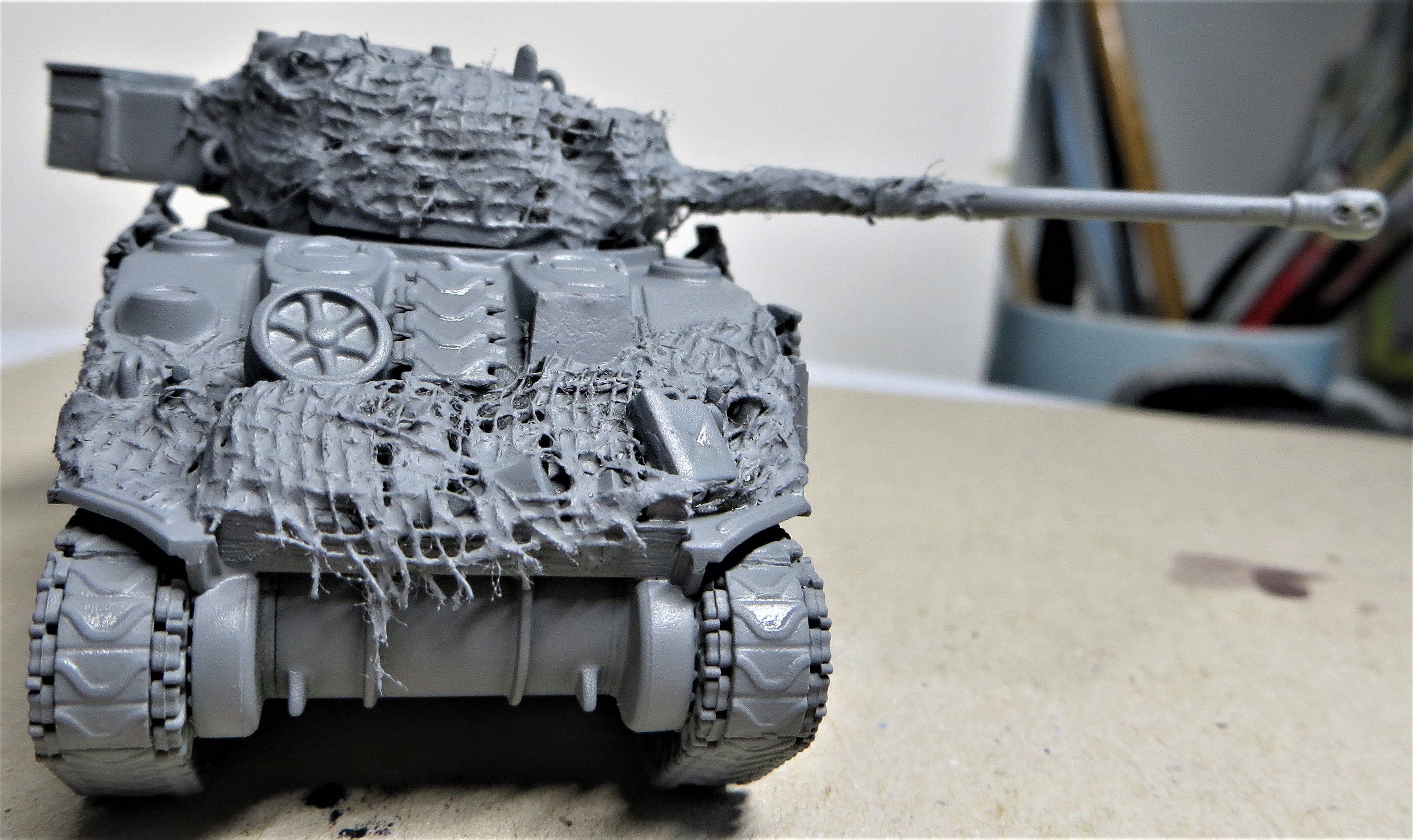 Need to add the scrim to the camouflage net, and some stowage on the rear deck.