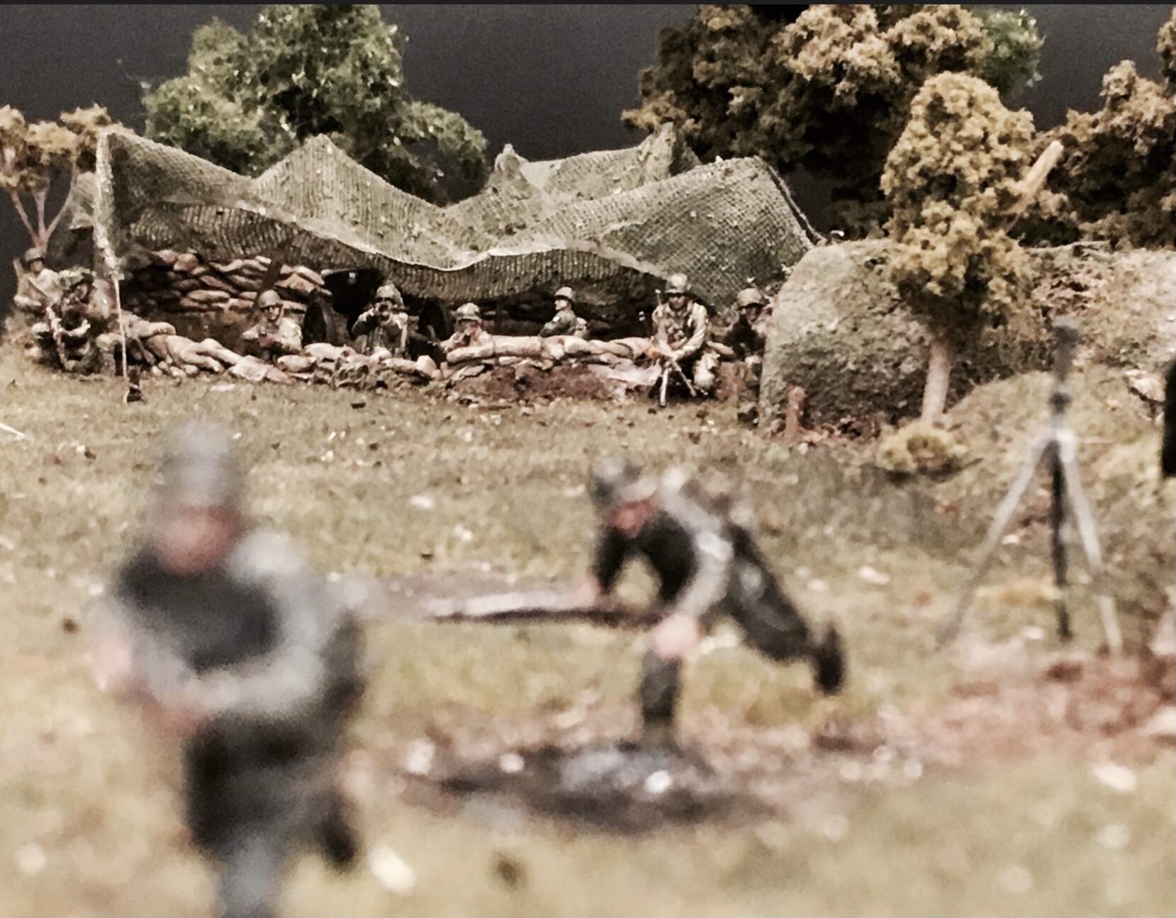 For the layout I am thinking of doing a sort of hide… An excavated pit which has a permanent cam net up and that leads upto a deployed firing area…same for the control tank.
