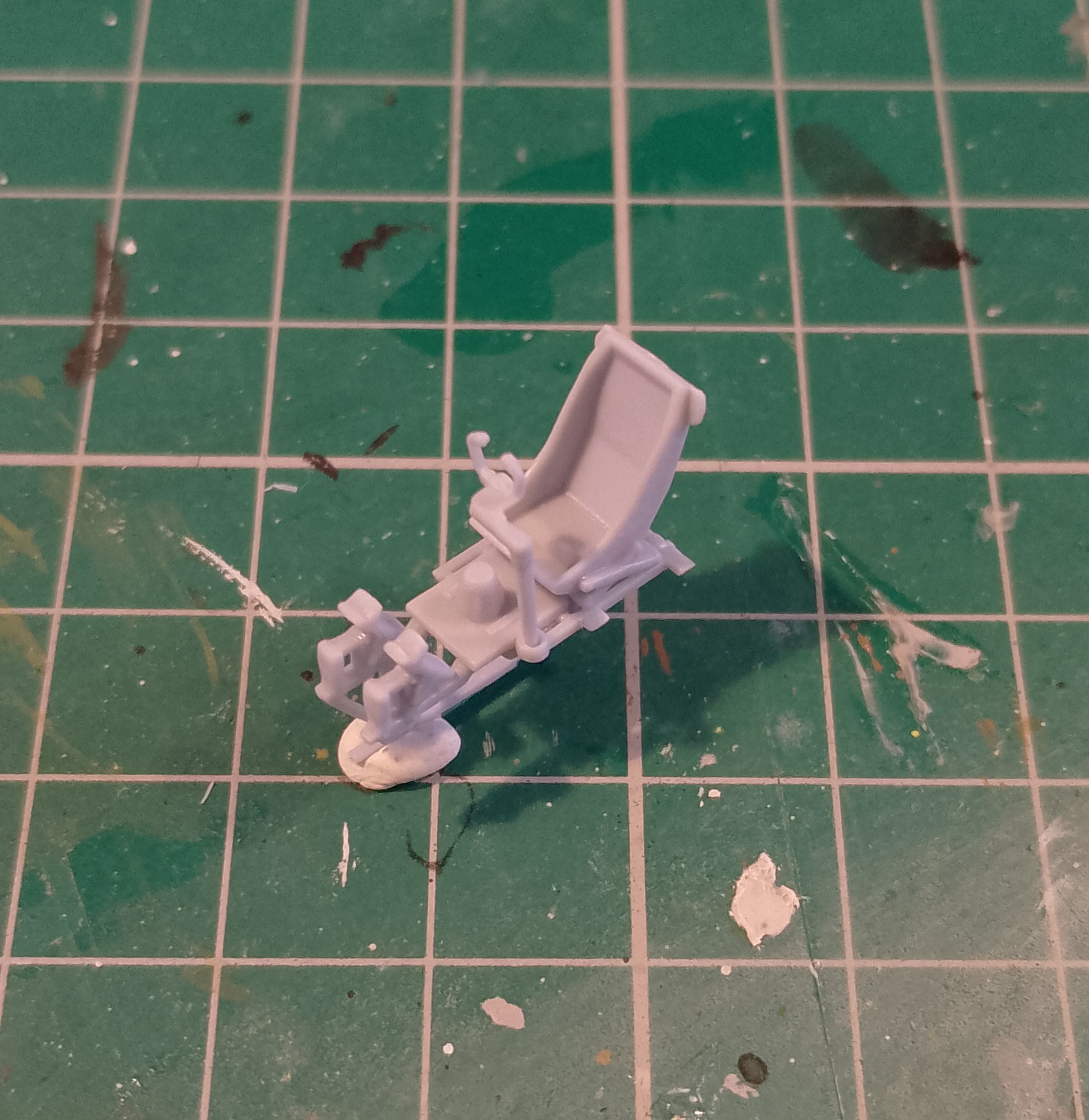 Made a start this afternoon. Got the pilots seat and frame together. About 5 parts here. The frame needed some care to remove from the sprue. It’s quite delicate.