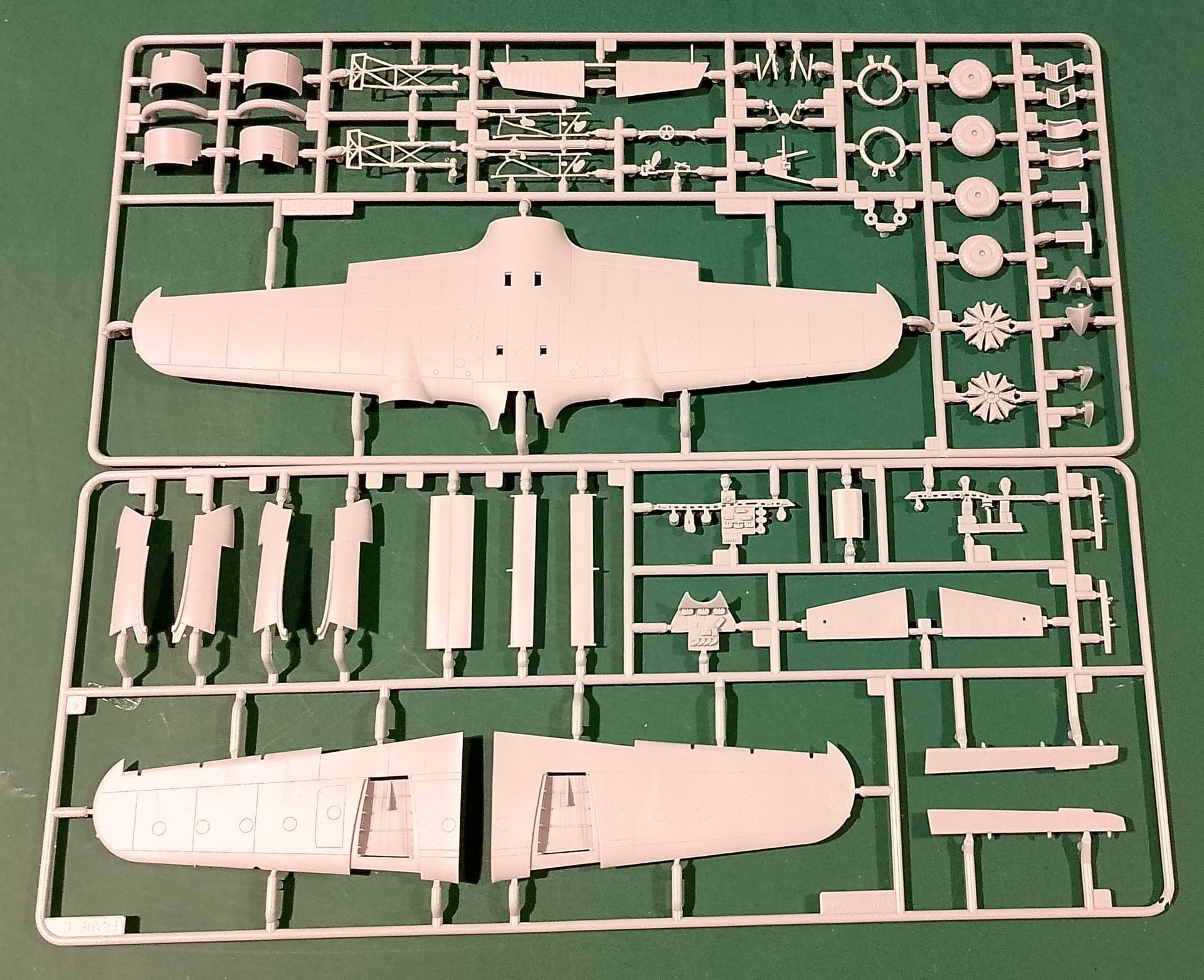 The only problem I found is some damage to the struts of the undercarriage legs. This one is made from the soft pale grey plastic Airfix used until recently and it is often prone to bending. The more recent dark grey plastic seems more rigid and less susceptible to damage in the box.