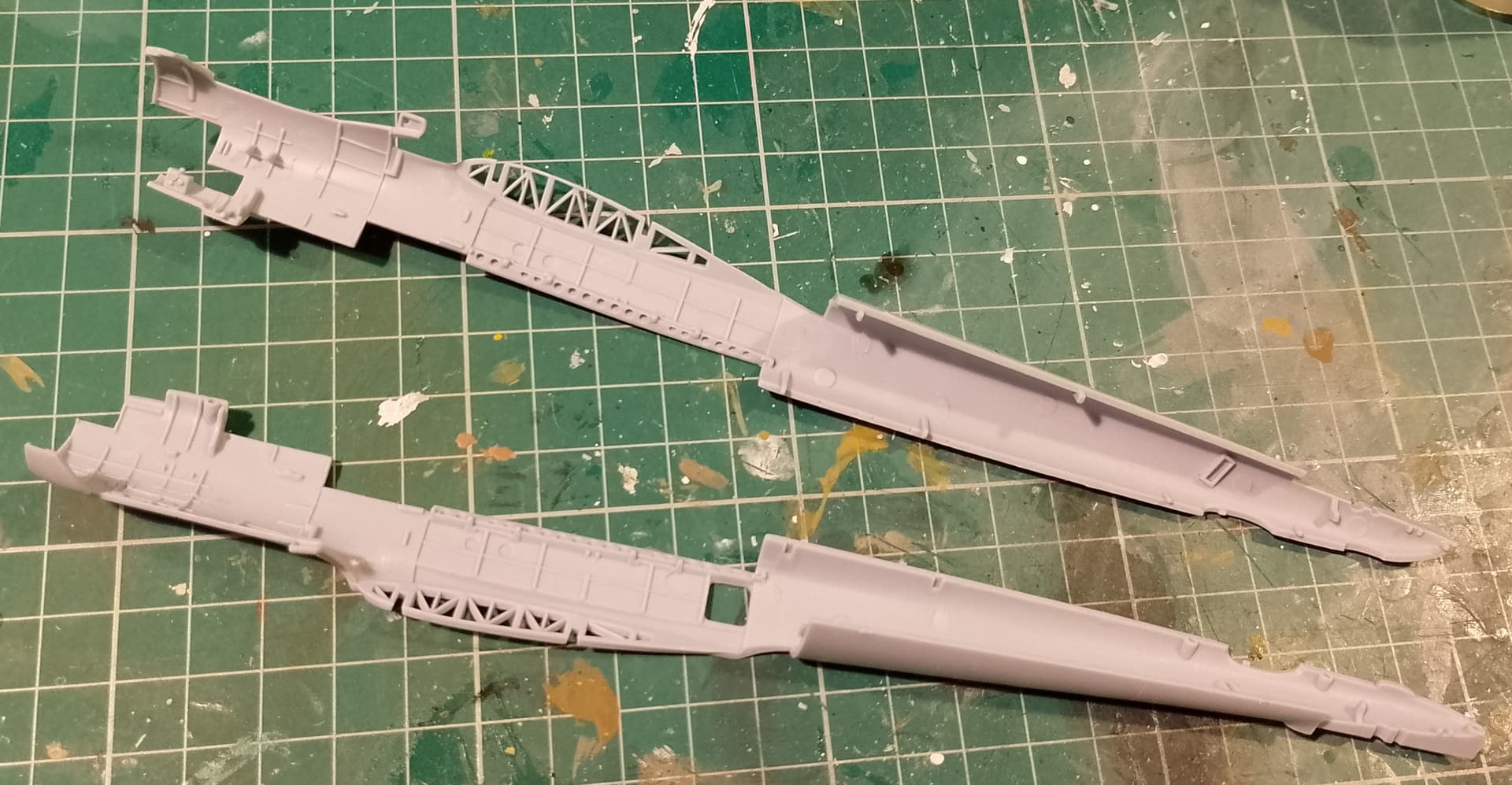 Had a few minutes this afternoon to get the fuselage halves cleaned up. Bit of flash but nothing serious. Test fitted them together and no gaps were noticed.