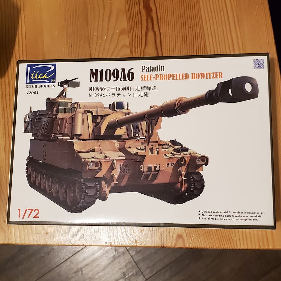 Anyone [in the US] want to exchange this 1/72 Riich M109A6 Paladin kit for something of equivalent value in 1/35? Based on my eBay search, the kit is only worth $22…
