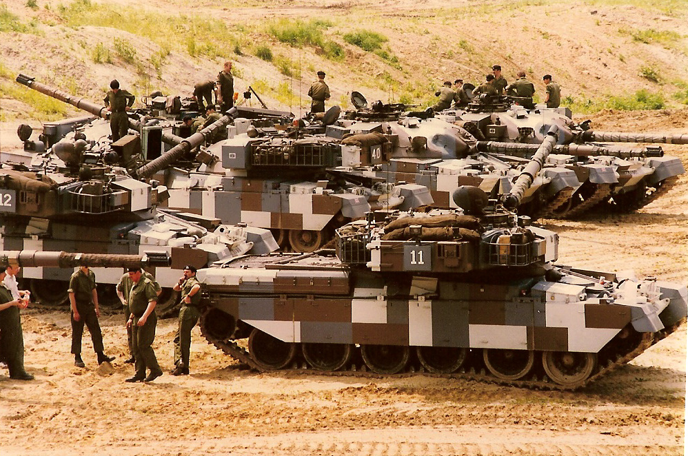 Chieftains with Simfire (Laser simulation device) - top 2 photos. That 2nd photo is really interesting, showing what looks to be an improvised canvas sun shield for the laser projector above the barrel. 3rd Chief from top left, has just the frame work. The ones in NZ service (& Singapore & Aussie) had a metal sun shield with brick like pattern cooling holes, backed up with what looked like an internal foam layer, same style of perforated metal shield/shroud was also fitted to the RX/TX box that sits above & behind the gun apeture (gun mantlet on anything other than Chieftain).