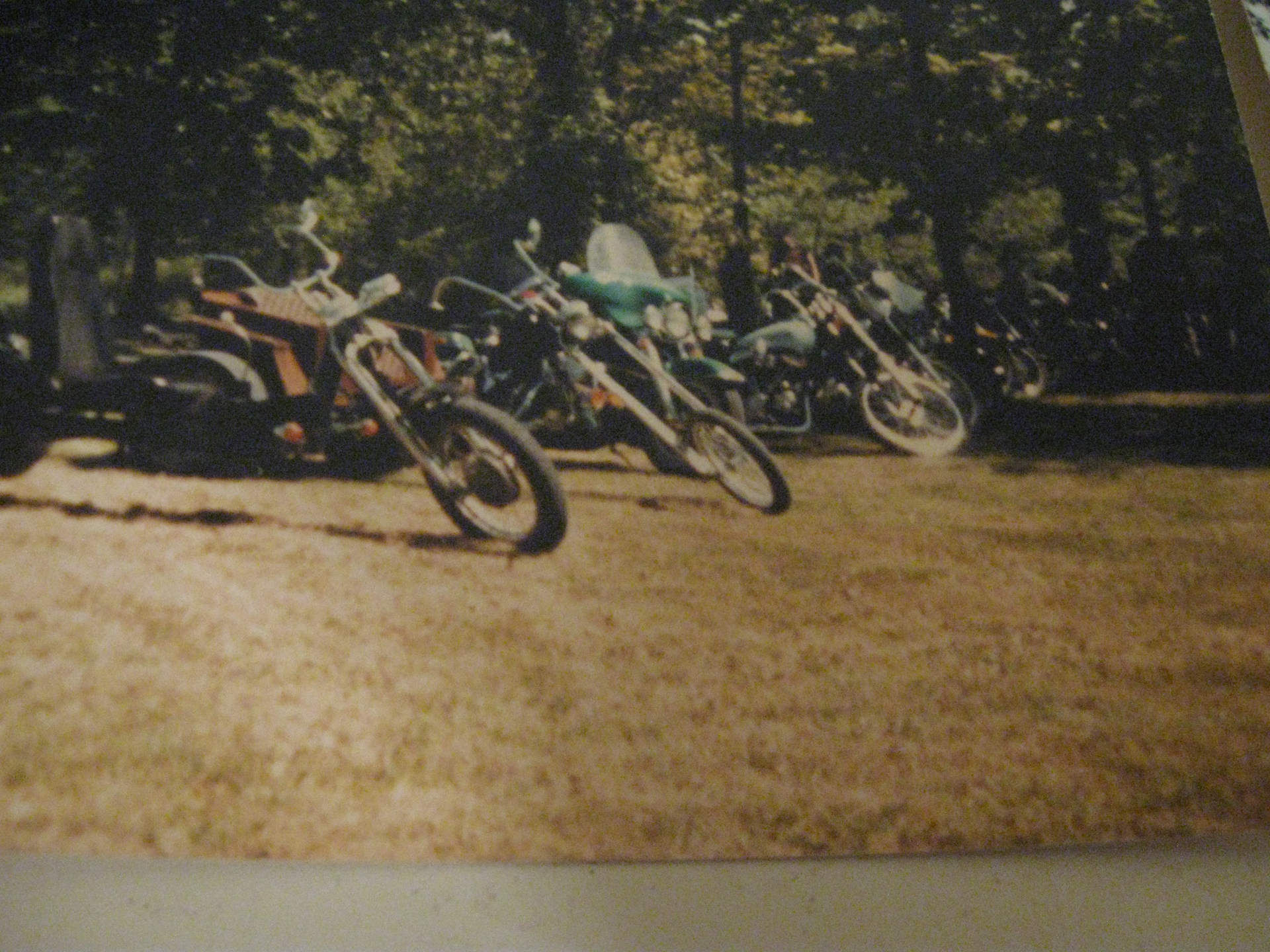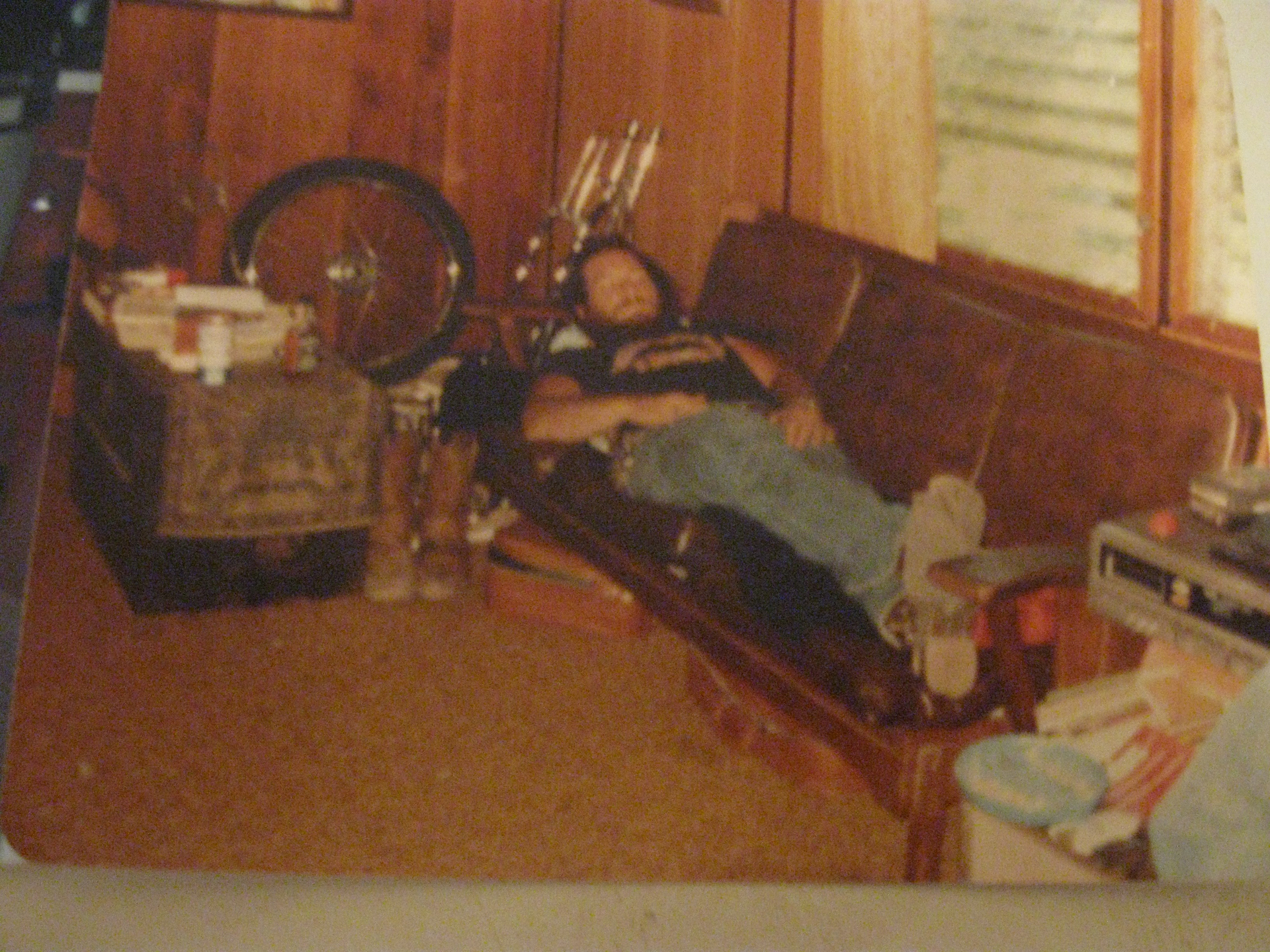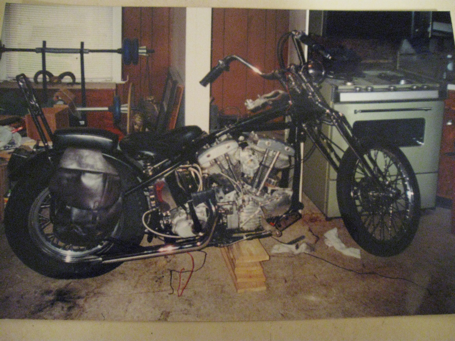 A few more inspirational pics from the days. my bike in the kitchen, the living room, some trikes,bikes and my suicide shift with the glass door knob. And me and my old lady back in the day! Hell gettin’ old! Wayne