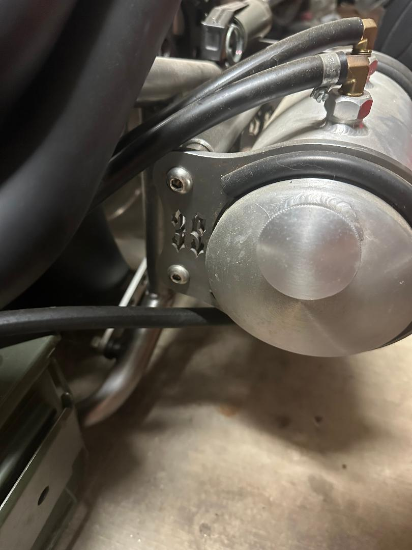 As you can see I installed the drive chain, battery box, ignition coil, dry fitted the rear stand and the exhaust. I tried to paint the heat discoloration here, but I’m not entirely happy here - I’ll work on that more.