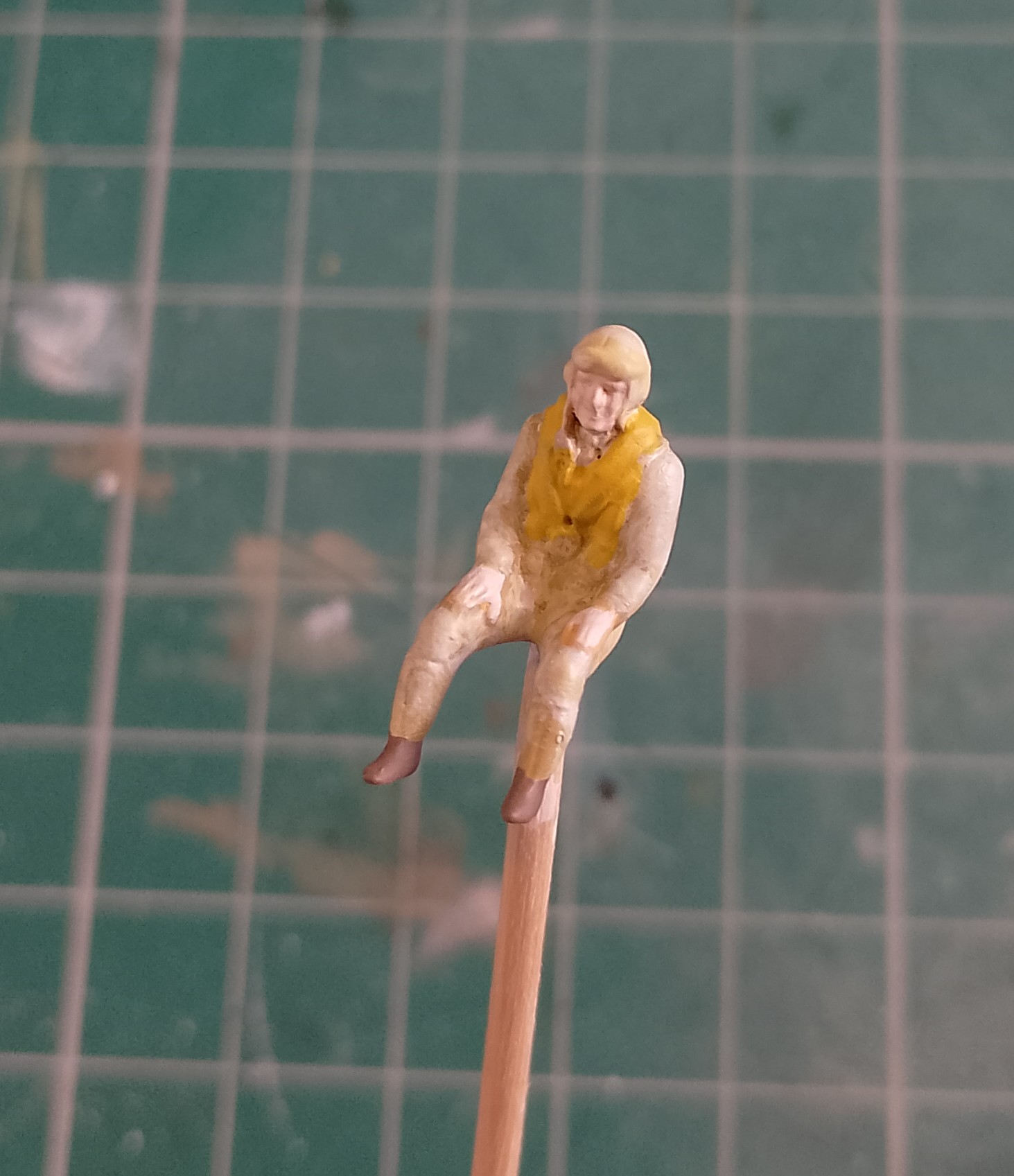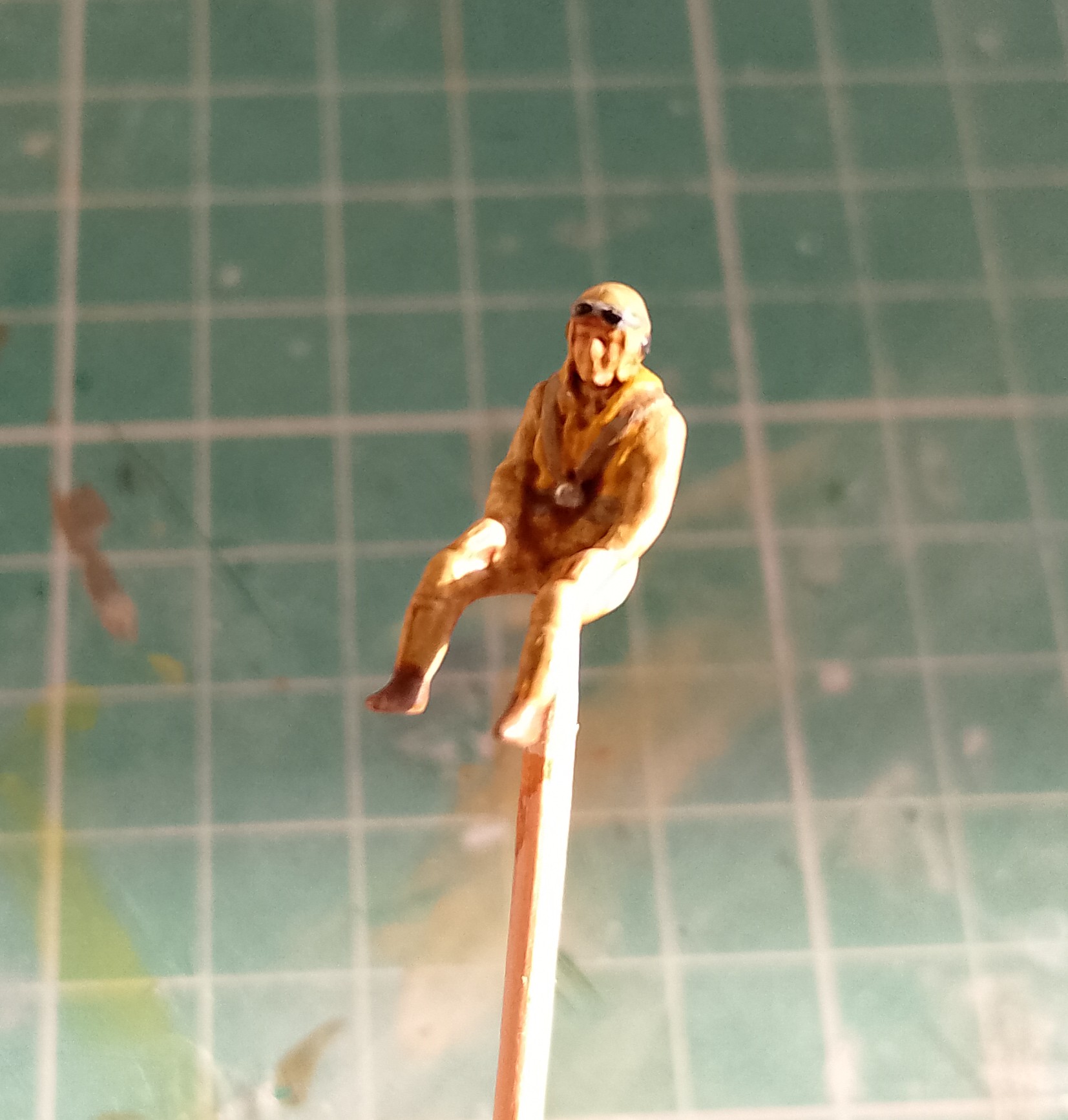 Got the pilot painted. Just goggles and seat straps to do on him when the base coats are dry.