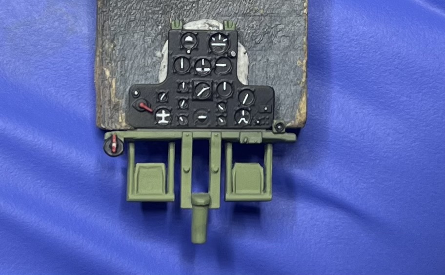 Wildcat’s cockpit is painted and assembled. I did add a drop of clear to the dials, but they’re barely noticeable.