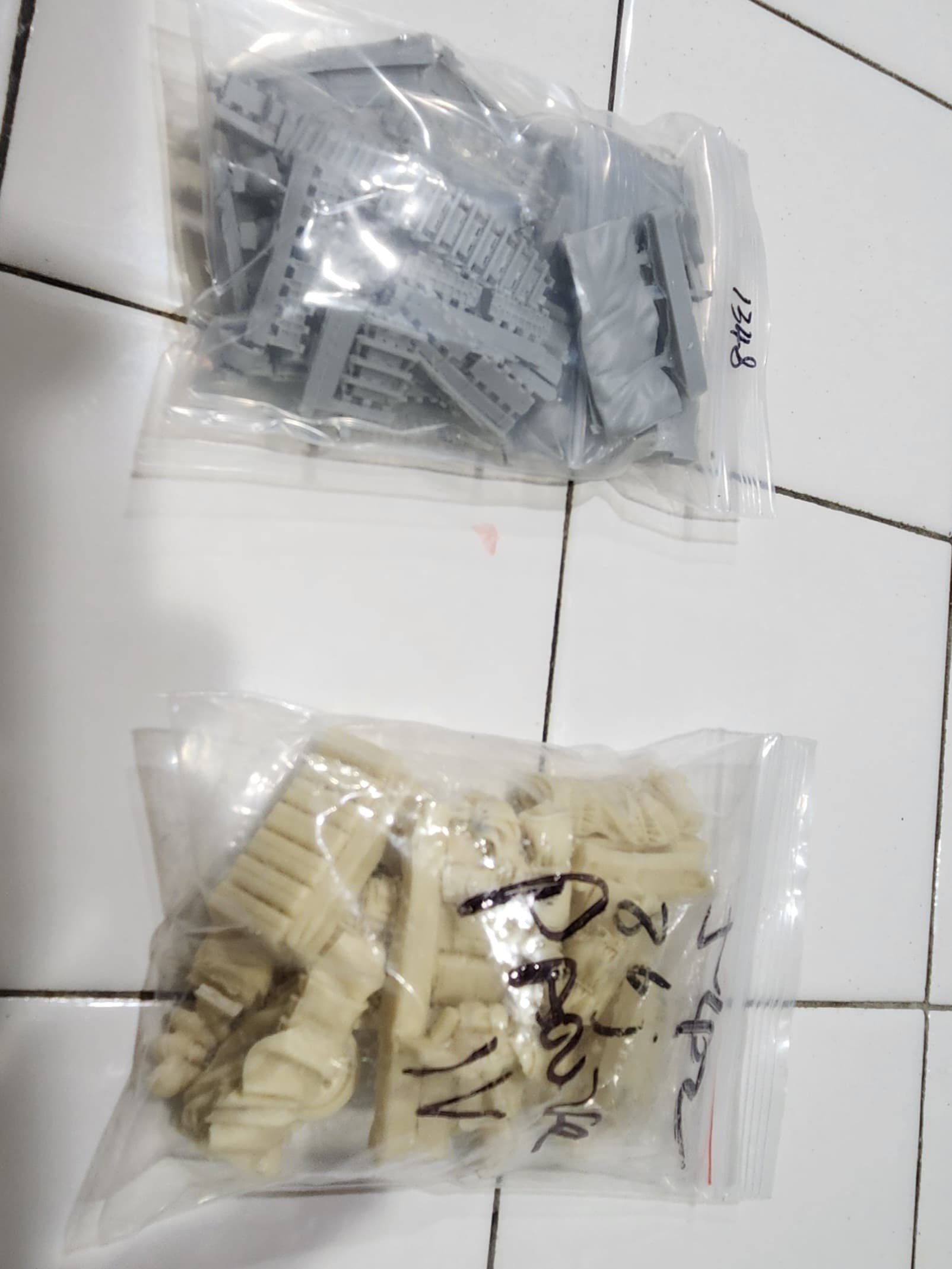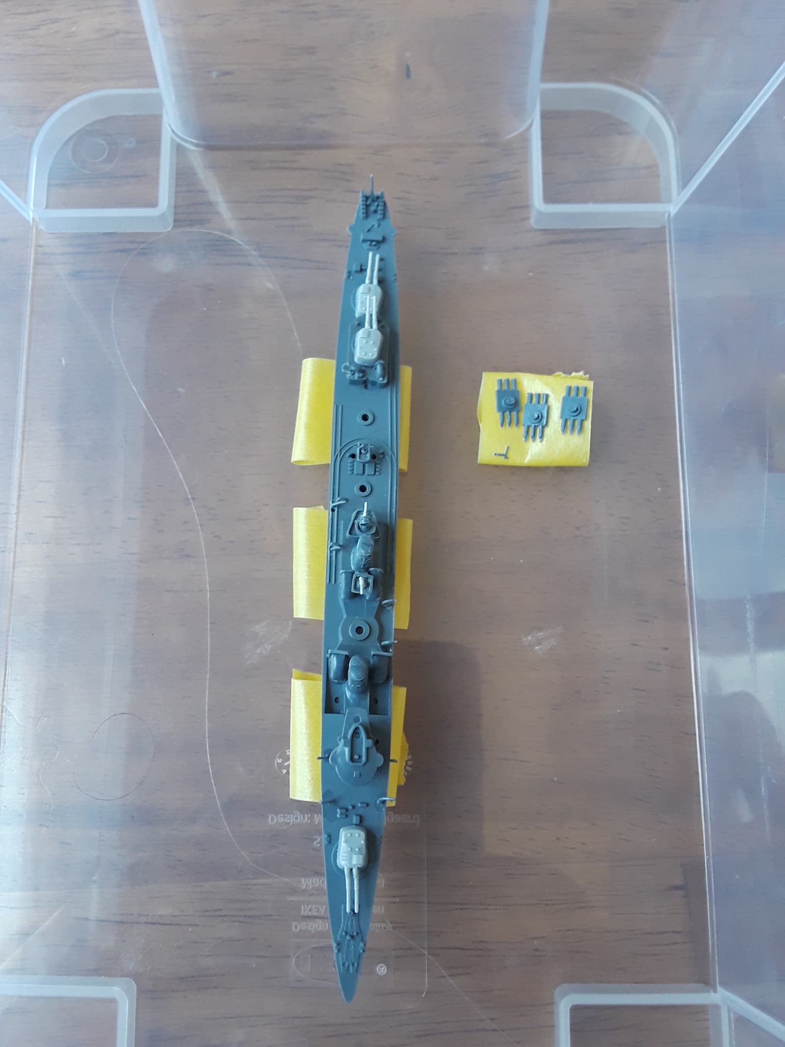 Finished about 80% construction, lighter color parts are from a SkyWave set. Most sub assemblies have been tacked on with a little glue. Did that to keep the primer from the mating surface. Next step-rattle can Tamiya.