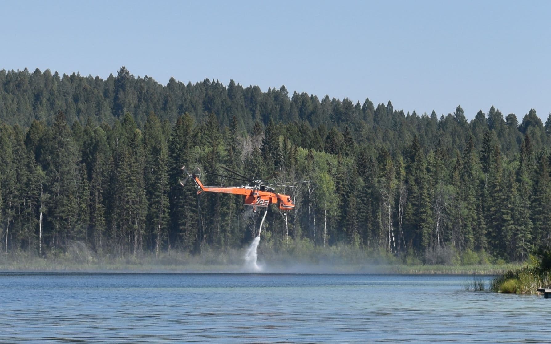 In addition to the Skycrane there are a pair of S-61’s (civilian model Sea Kings) with buckets so one arrives at the lake every 4-5 minutes.