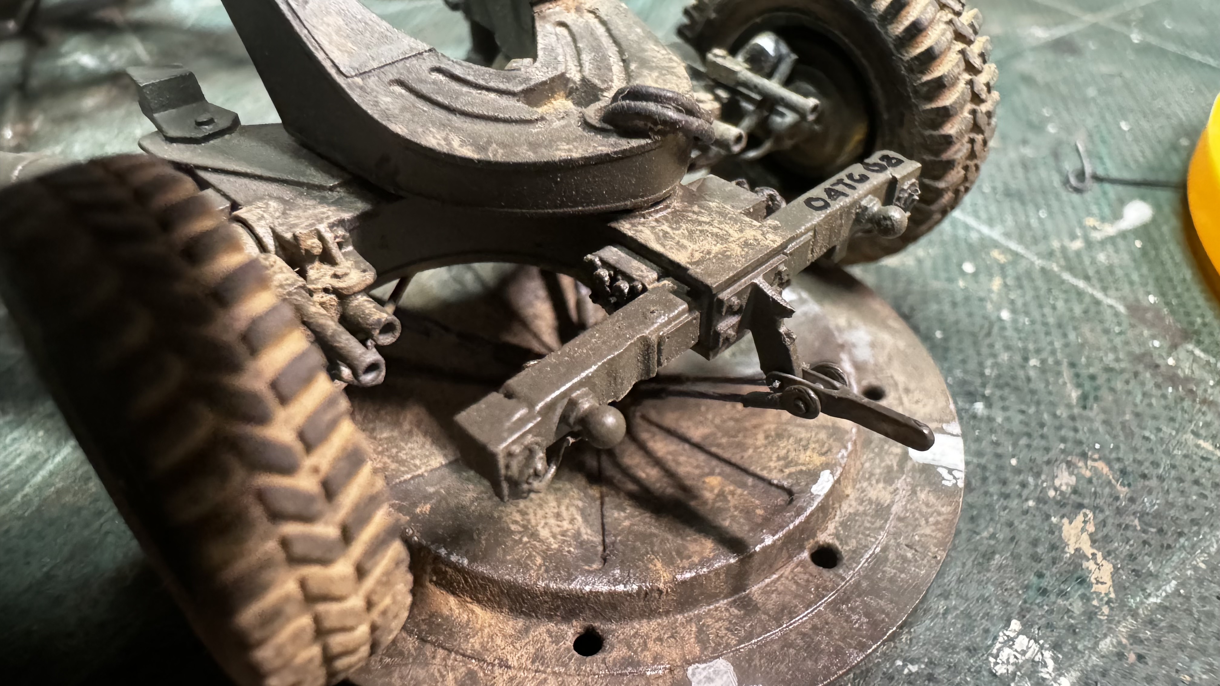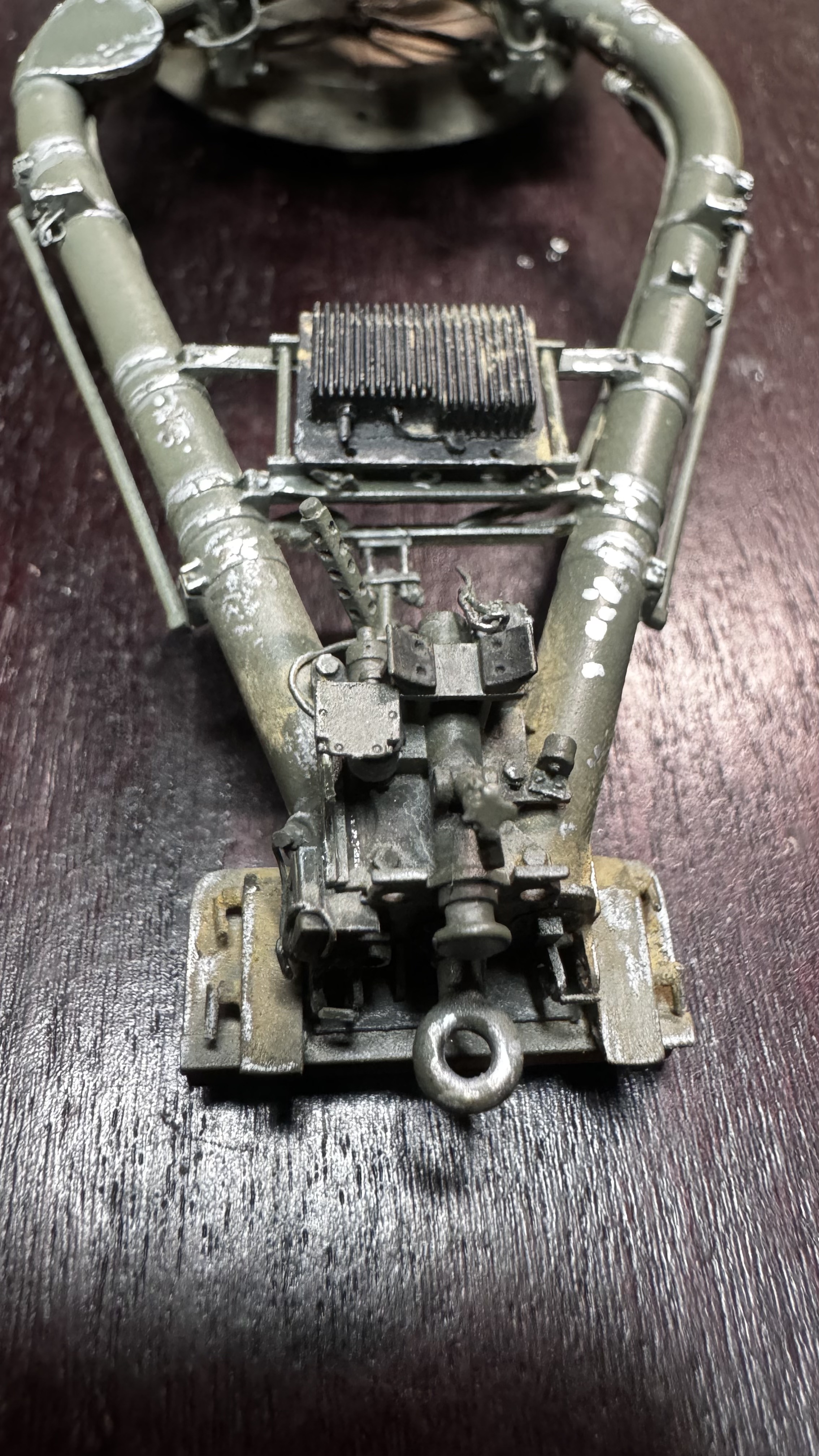 The model is starting to come together now …some weathering on the lower chassis and high use areas …few more bits to add …the pins added to the base plate were a challenge…