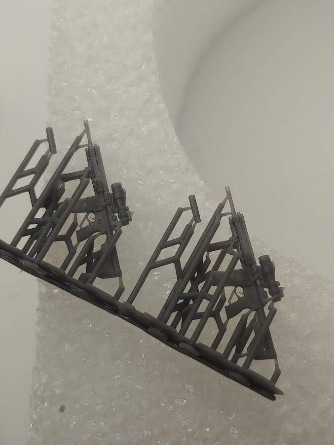 I fully get why you may be losing your sanity lol … those ribs for the Chinook look …wow… and the long beams look perfectly straight. That 1/16 .50 looks superb as well. As a point of interest looking at say the Chinook long beams, you have the beam, and all the zillion support struts under it, are those all straight in the bin once cut away or can they be recycled into resin material to use again ? if not, how much from a container of resin would end up in the bin as the support bits ? 50% ??