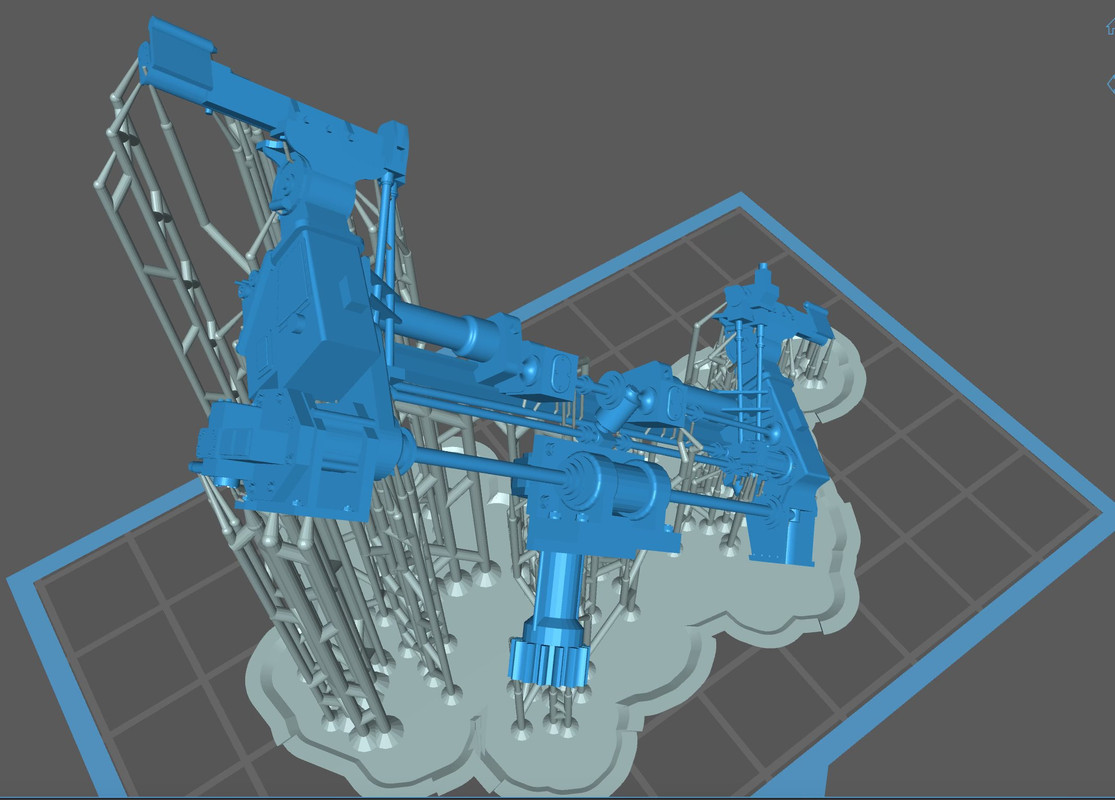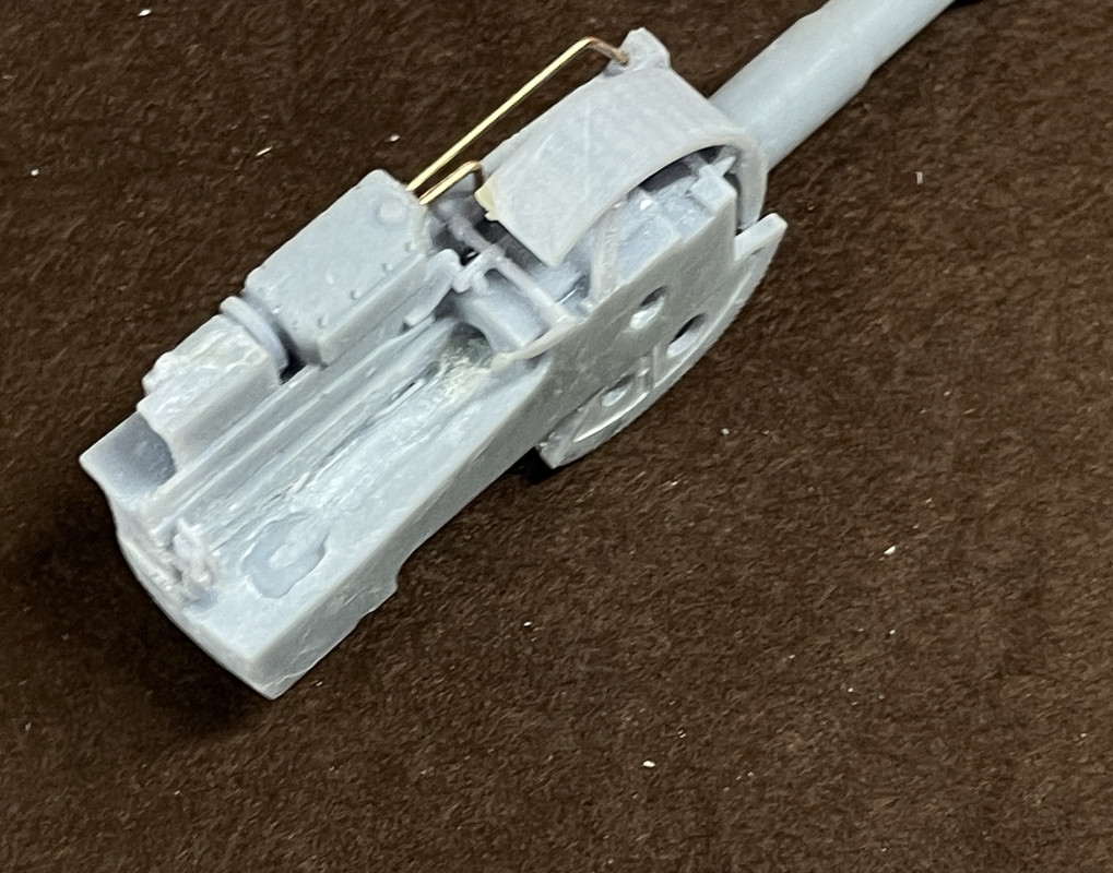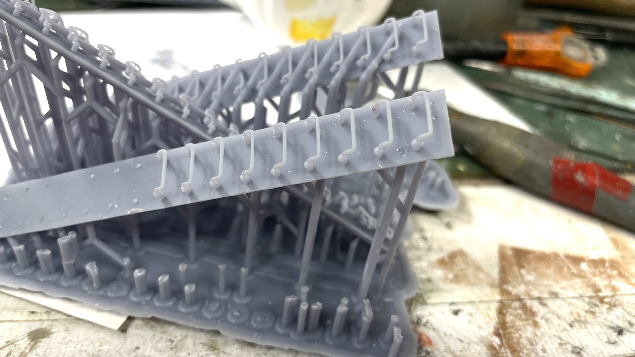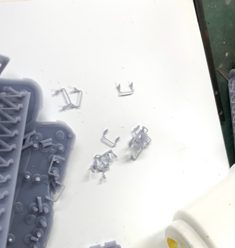 This shot was taken during the removal process. I’ve found that using the flush cut tweezers thing that MicroMark sells seems to work pretty well in snipping tiny supports. I also used a very sharp #11 blade. The blade only works on parts that ARE NOT post-cured.
