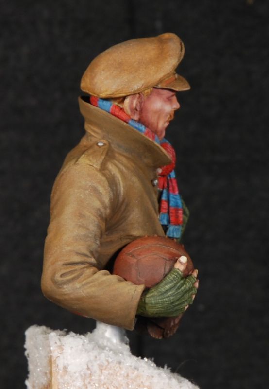 Wonderful work Jan- you’ve managed to inject a lovely bit of color into this with the bright scarf and the liquor bottle. The texture on the scarf, gloves and the leather football are superb. I like your depiction of the face too- the slightly lighter tones on the left side of his face to show where the light is falling is very well done.