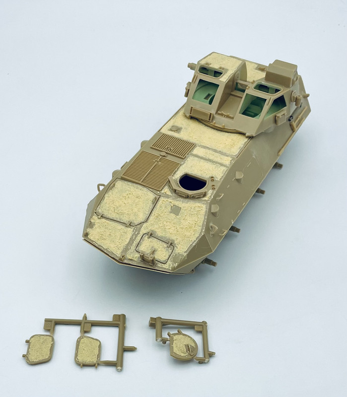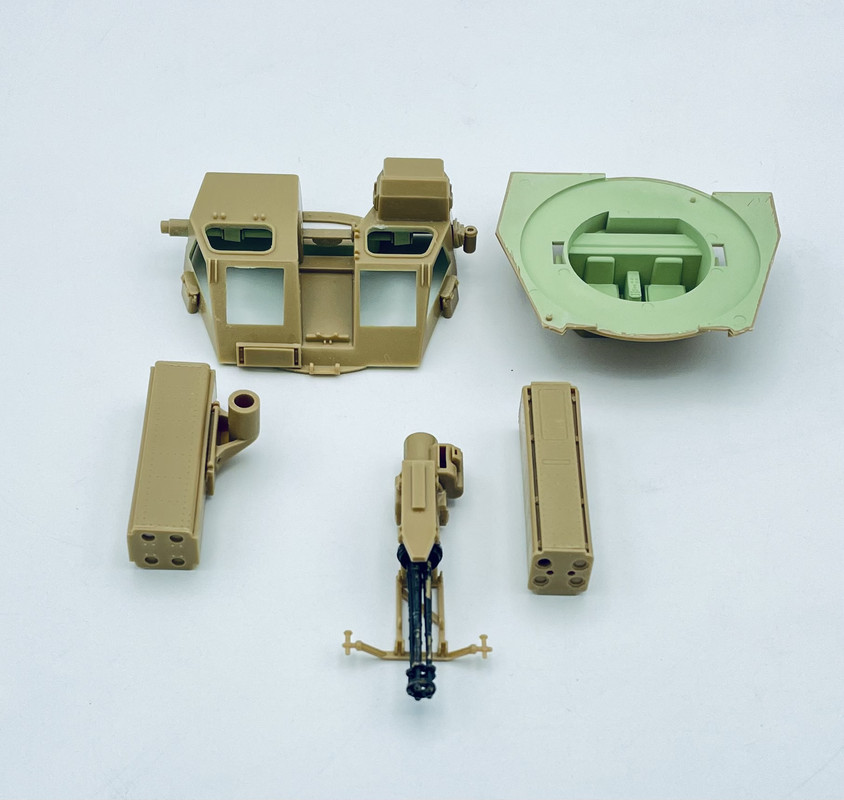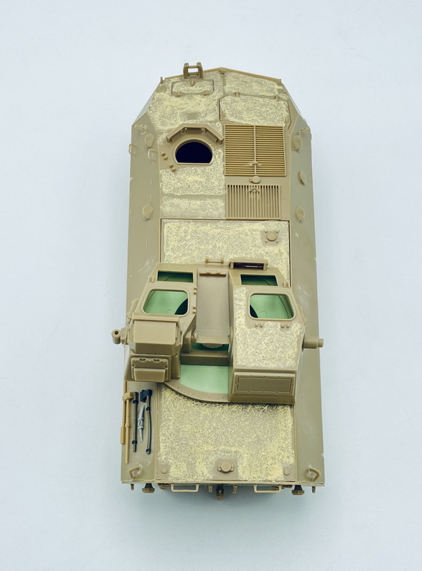 lastly I got some areas of the turret interior painted in the CARC/NATO Green that would be highly visible through the turret windows. the upper center portion I’ve seen in some video footage, but the lower portions are just an educated guess.