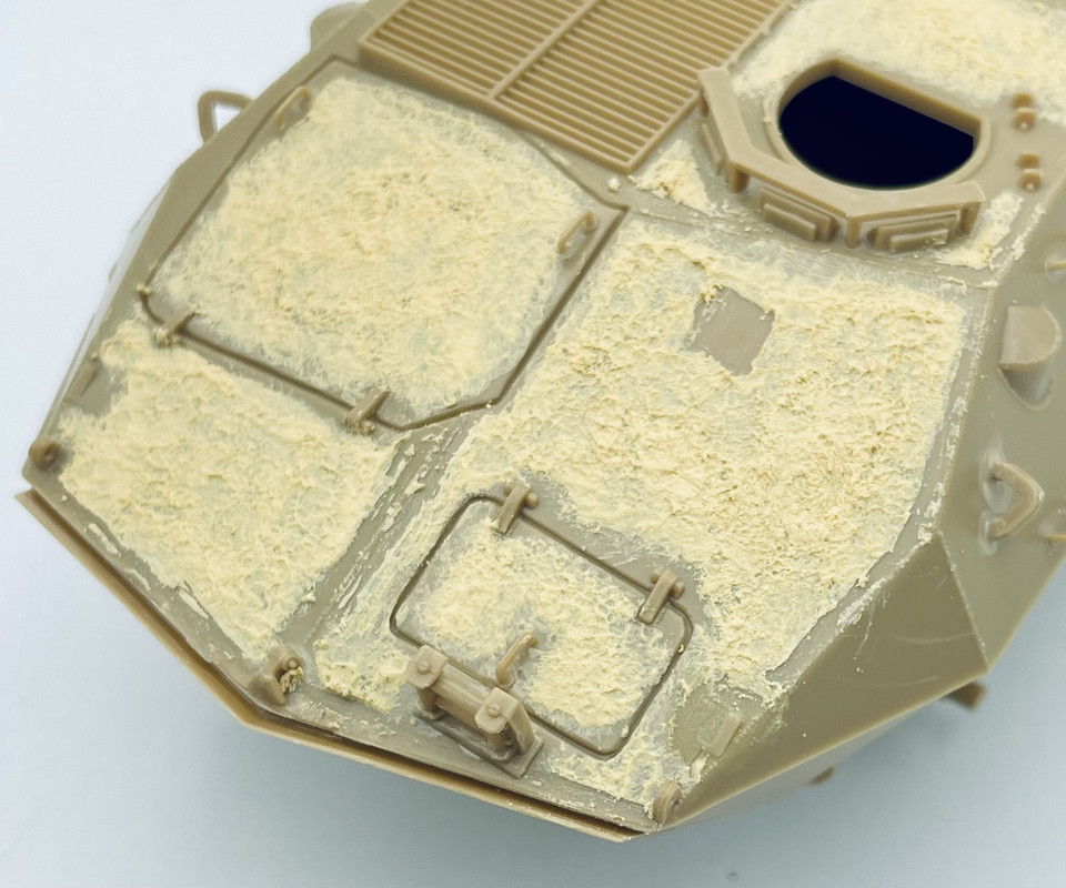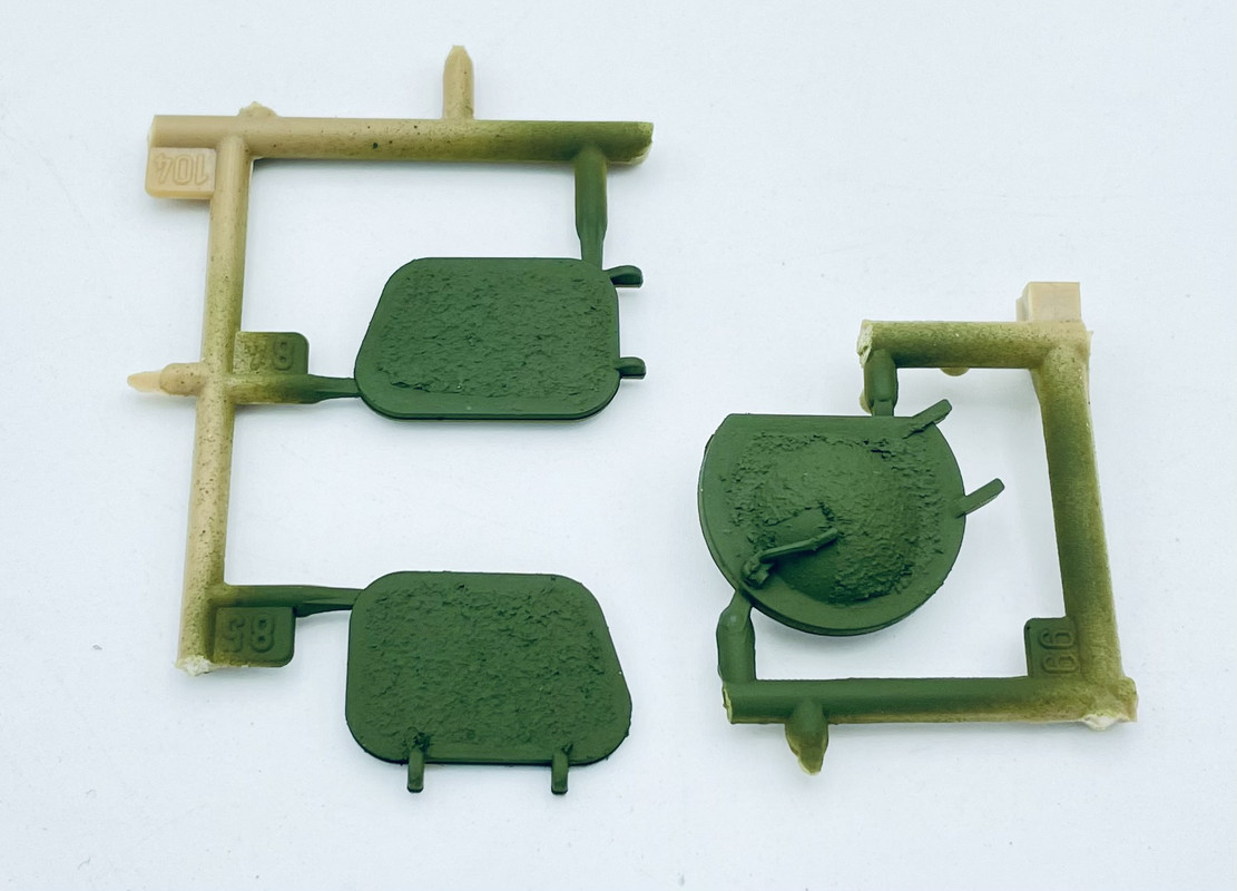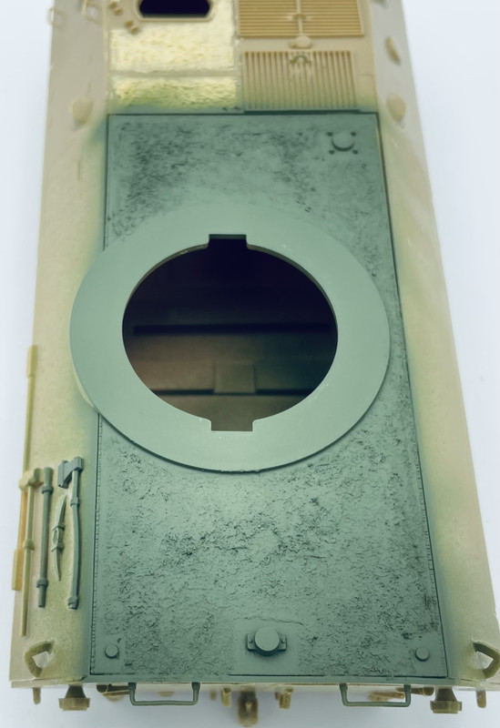then since I was going to be airbrushing on some CARC/NATO Green on the turret interior areas, I also hit some of the decking areas with the excess to get a good idea of how it looks under a coat of paint…