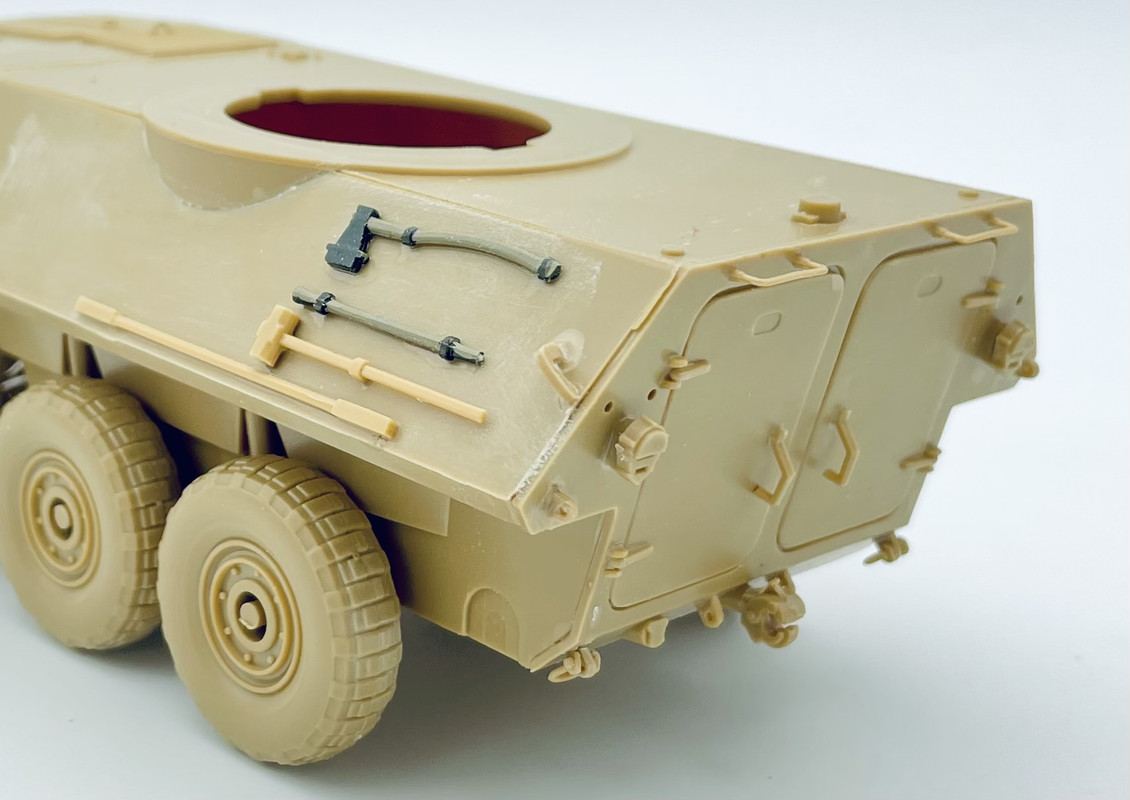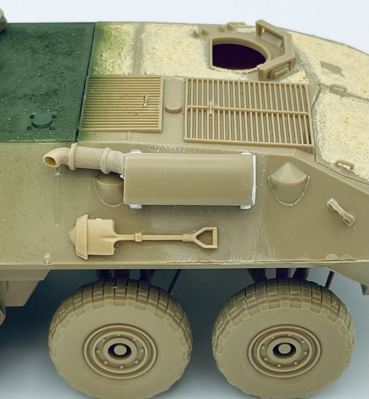 I need to add a few small fittings to the right side, plus scratch up the jerry can racks on the rear troop doors. But not too much farther to go on this now…