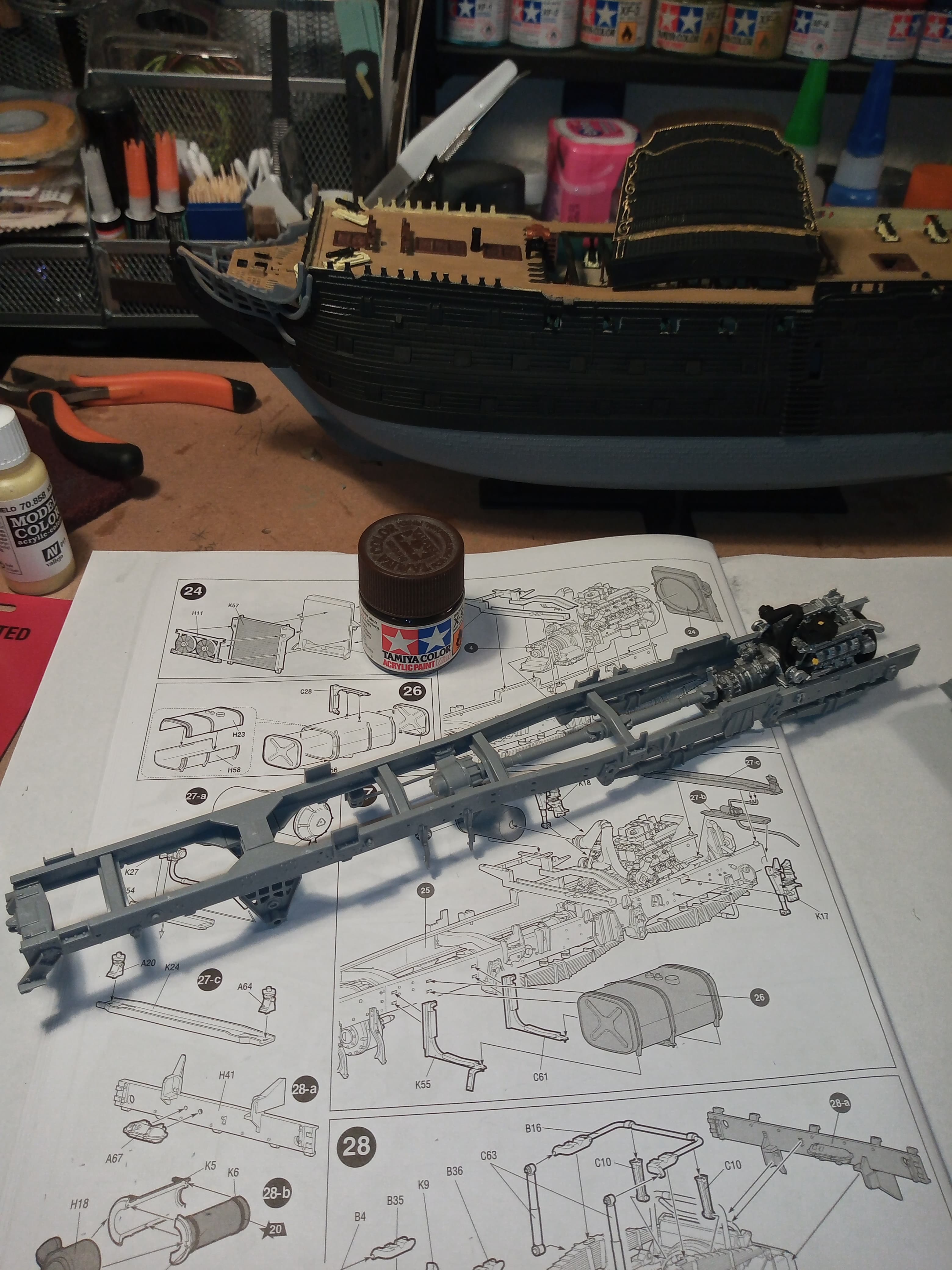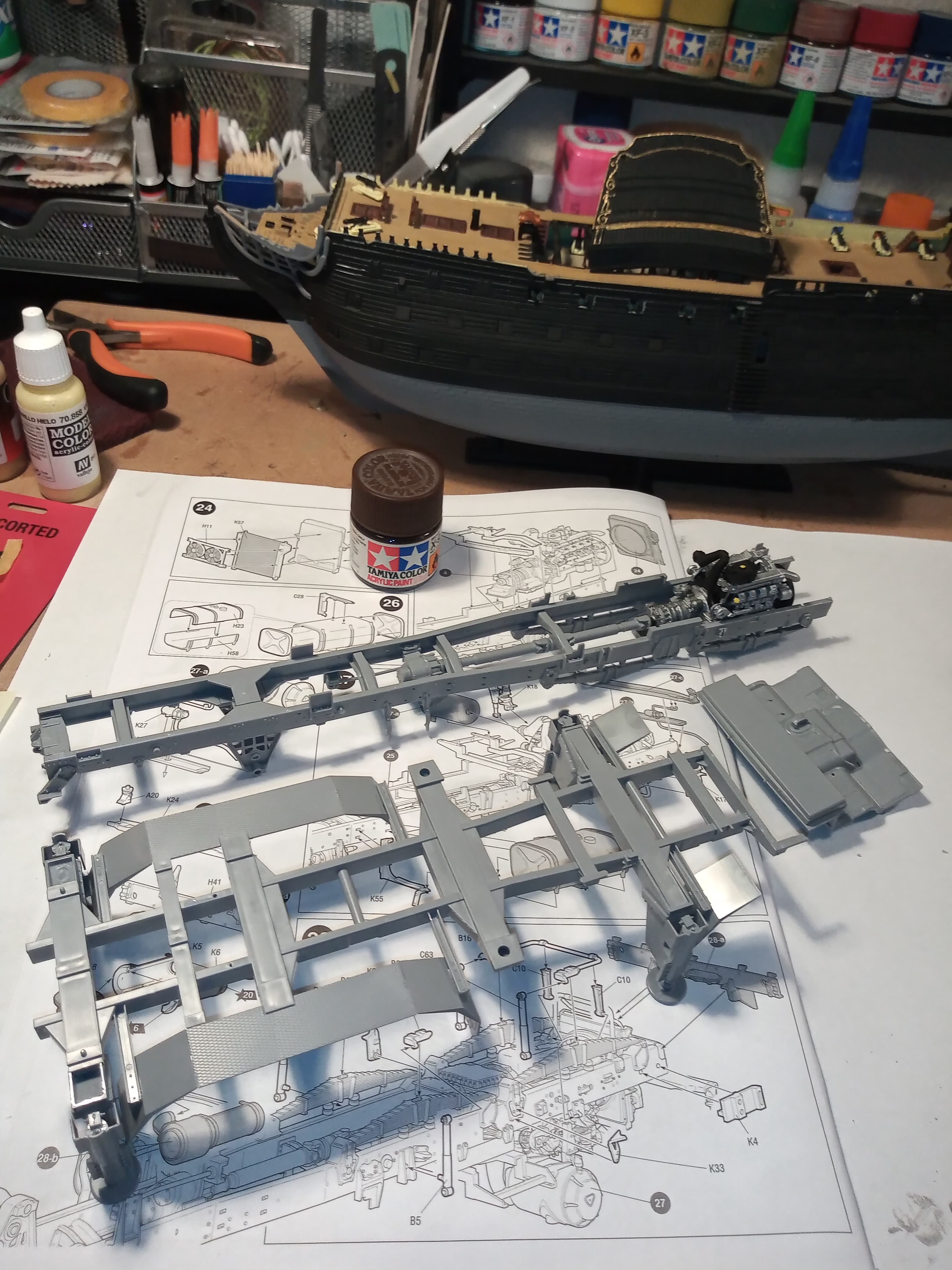 I have the A222 ready for primer ! The way trumpeter designed this kit allows for the major subassemblies to be painted separately. Very helpful considering the amount of acreage on this truck. I’m planning the box art scheme of green w light gray splotches edged in black.