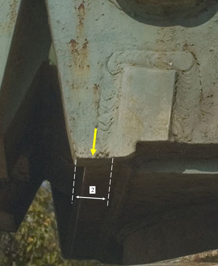 The 2 pictures above show the massive Corner thickness, and also the Corner’s Side Width, making it an important flange at the lower front of the Turret.