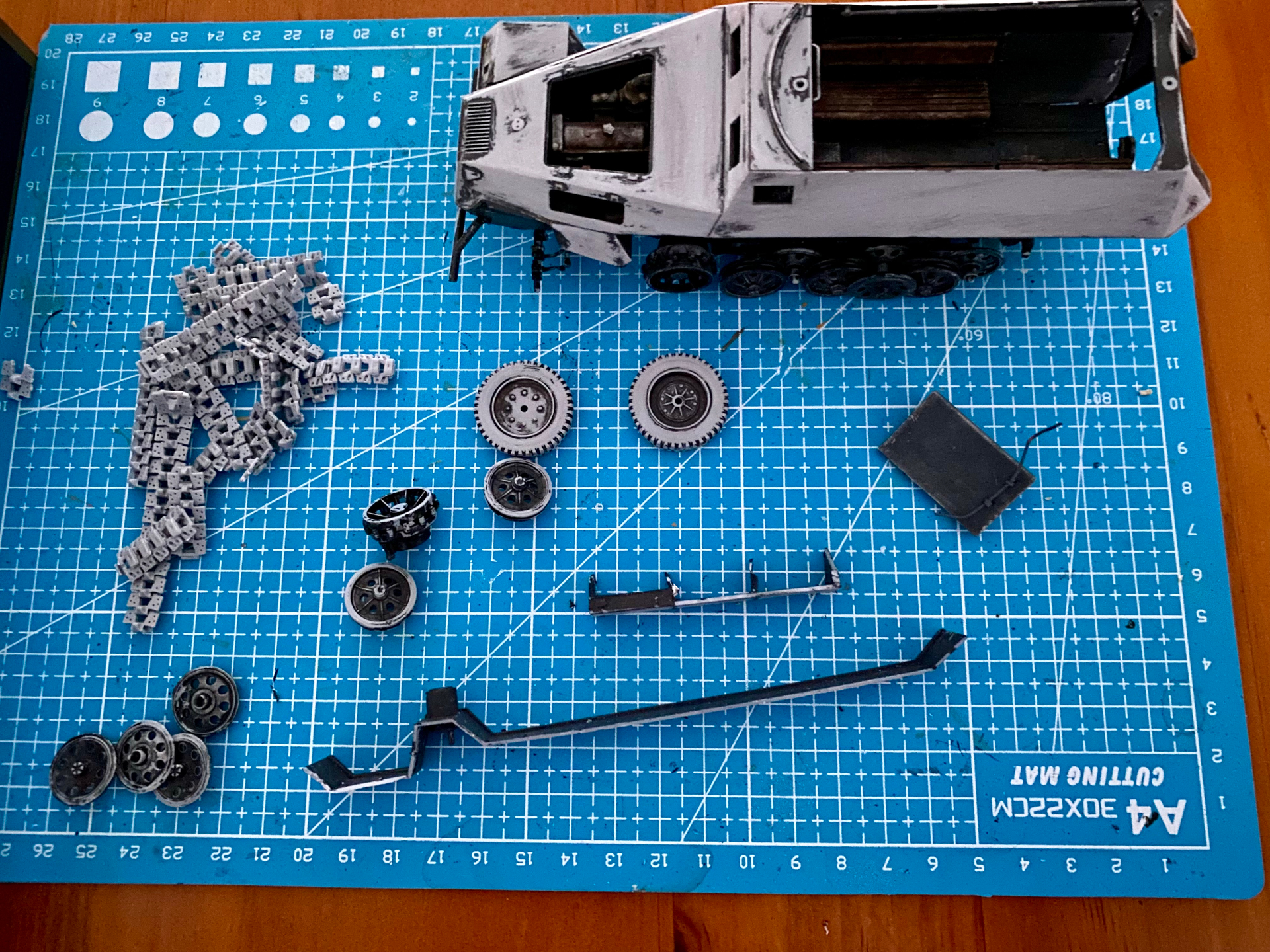 Afternoon all! A fair few years ago I picked up a Zvezda brand sd.kfz 251/3. I built parts of it and painted it a bit then got stuck on how to fit the tracks onto the vehicle after putting them together.