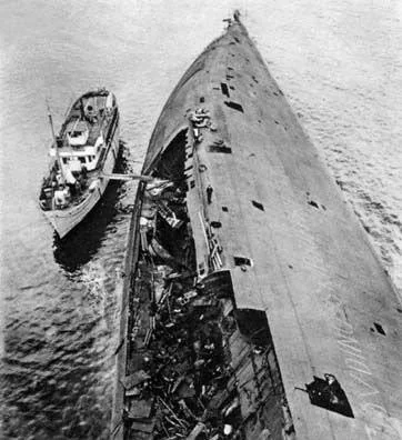 The Tirpitz was flipped upside down in a Norwegian fjord,