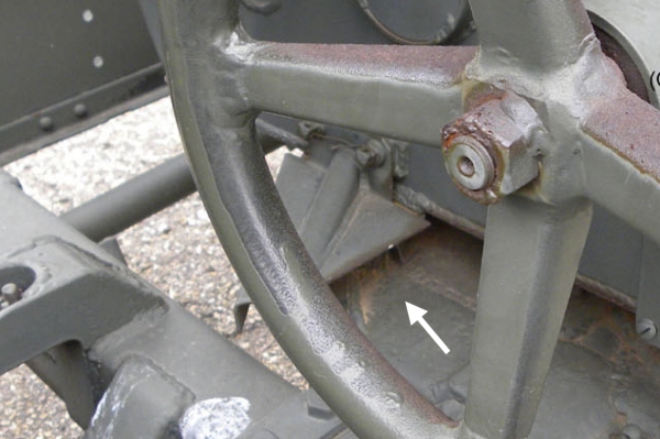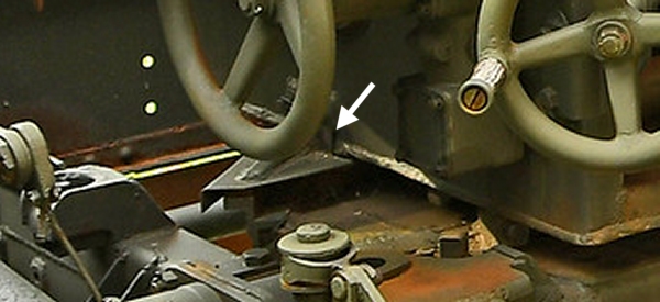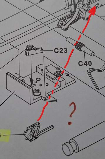 There will be very little space between parts C32 and B18. This means that C46 can only partially fit under C32. The long lever needs to be reachable by the gun crew if it should serve any purpose, either from the front or from behind (inside the shield). It is a dumb position for a lock for the trail arms which leaves a lock for the toothed traversing arc.