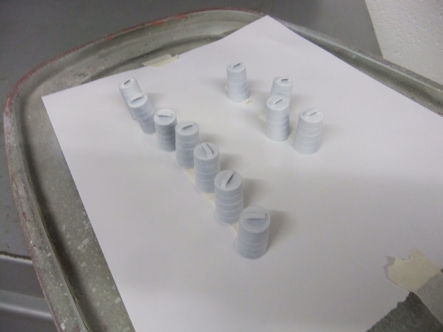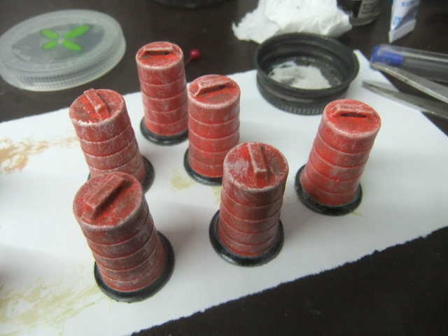 (APR 23ndh) Today , I done the wash /dry-brush on the yellow cones, and glued all of them on there base !