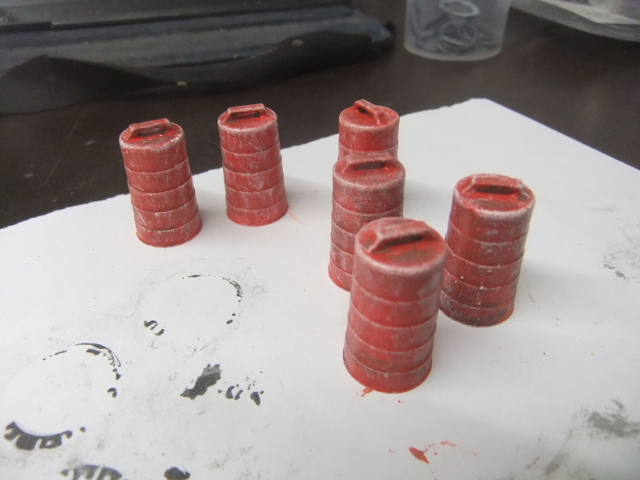 (APR 22ndh) Today , I done the wash /dry-brush on the orange cones, and painted the green one !