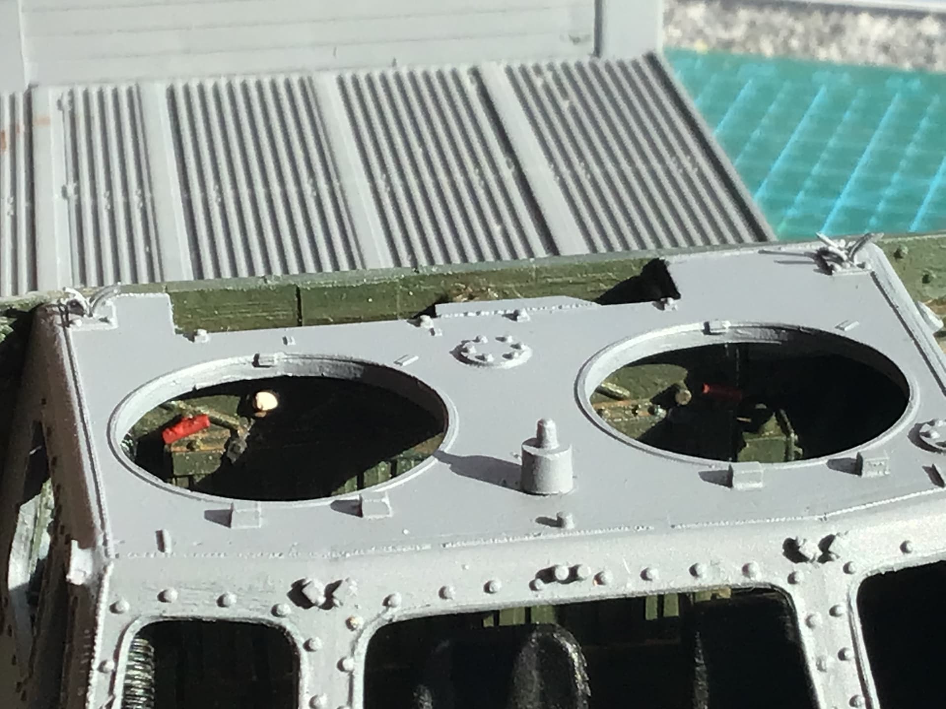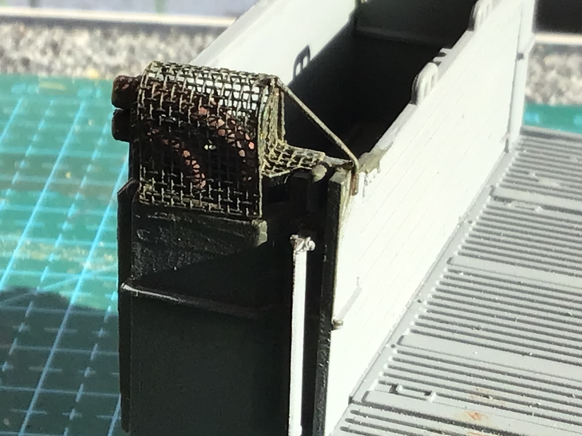 Roof cleats replaced,exhaust mesh on and the rear tailboard tie downs on.