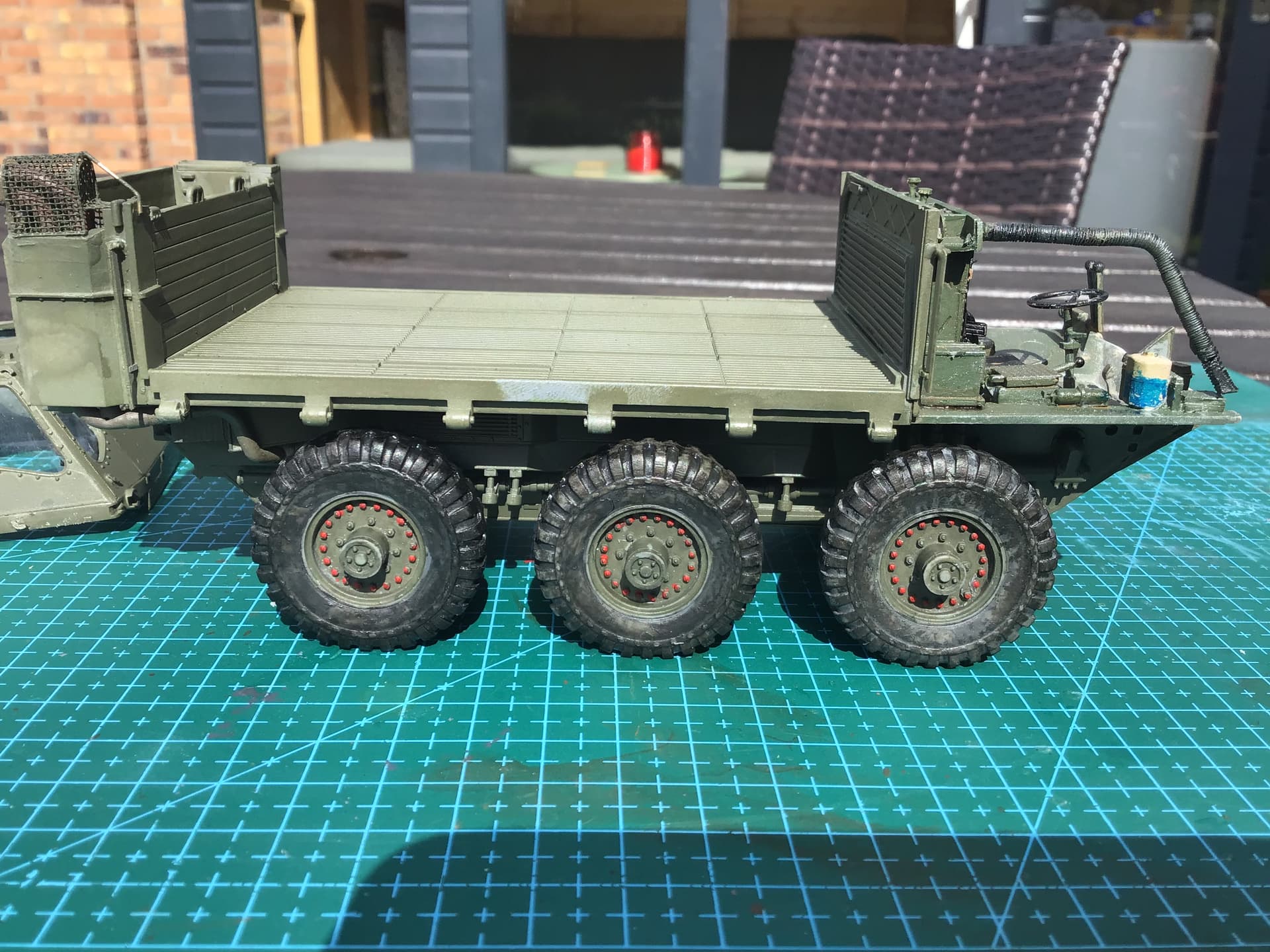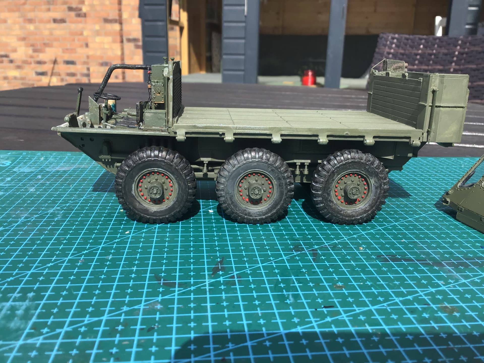 A bit more progress,wheels are on and they all hit the road much to my relief😀Some paint on and the black rod of death and some dirt in the cab,probably do some more but the drivers kit has to go in next.