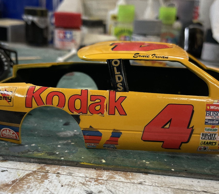 Finished in the nick of time! Got the hubs painted, joined the body to the chassis and glued in the windows. This baby is as done as itās going to get. If I had more time, I was going to try and craft some NASCAR hood hinges. Not happening.