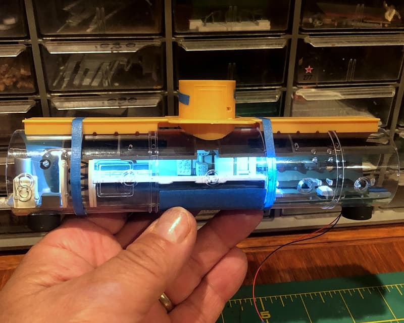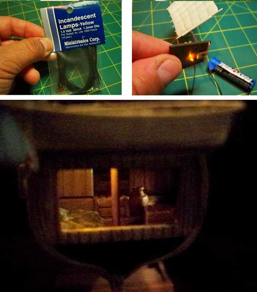 I had put a light in a model once before years ago (a Chinese fishing junk), but fitting the incandescent light and figuring out a power set up for it had been a real pain, so I wasn’t looking forward to doing it again!