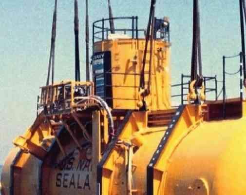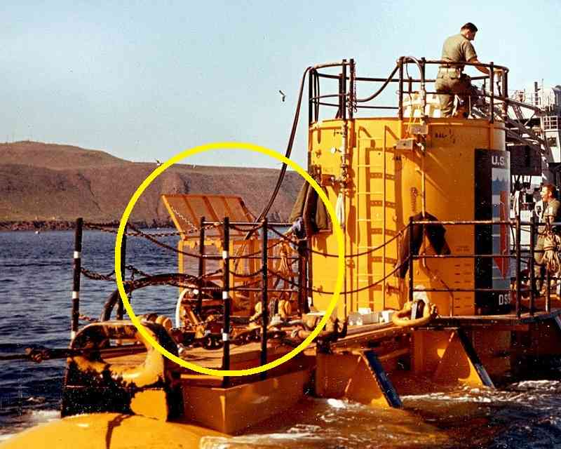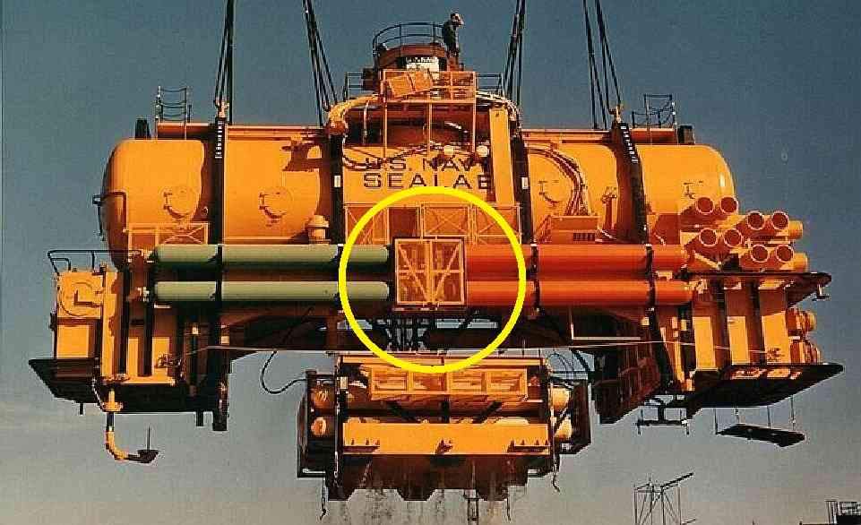 The lower tank assembly was the construction that anchored SEALAB III to the ocean floor. It contained the main ballast tank, eight smaller air tanks, plus the sonar transducer and other gear.