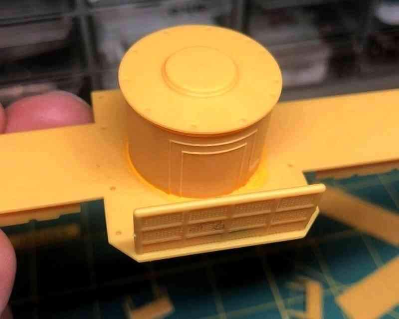 Before starting this kit I was unaware of the Star Wars connection, which I still find fascinating. The top of the observation/storage room was yet another greeble Lucas’ ILM used on the Millennium Falcon studio model.