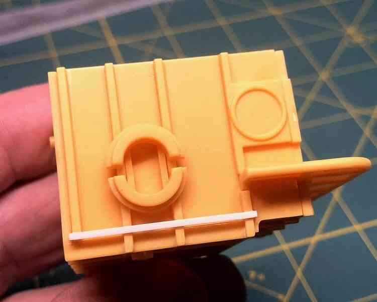 Fixing it would have been an effort, so in the spirit of ILM’s greeble gizmology I tried cheating a bit and simply concealed it under a length of plastic strip. It wasn’t technically accurate, but it looked reasonable and did hide the seam.