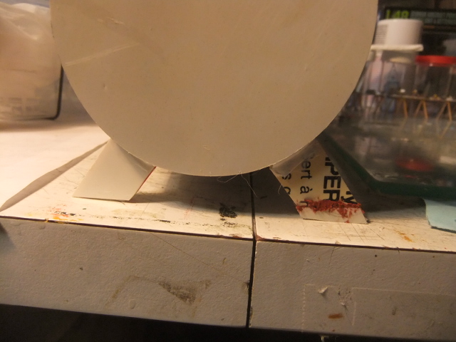 (FEB 19th ) Today I sanded the first primeur shut and apply more putty to the problem area and glued a styrene piece at the end , I also glued the spacer on the second post !