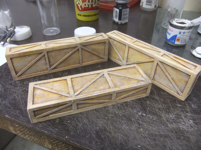 (FEB 27th ) Today , I done the wash / dy-brush on the WOODEN BOXES !
