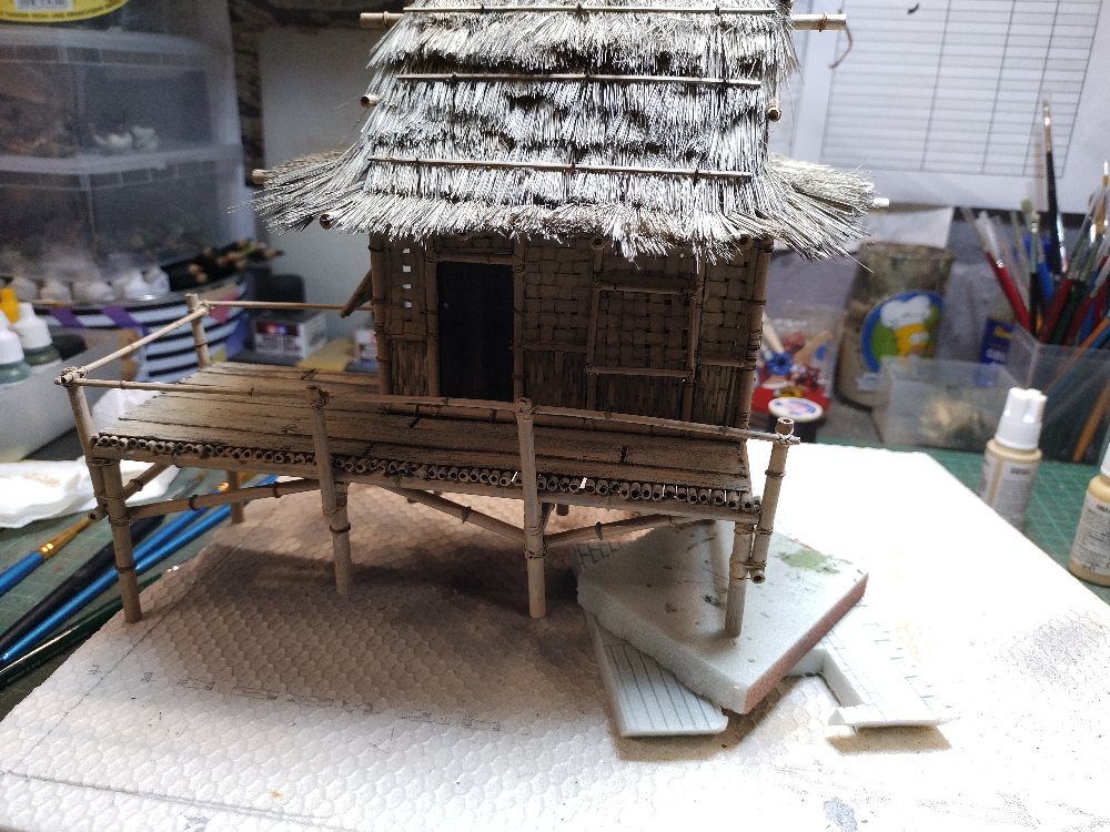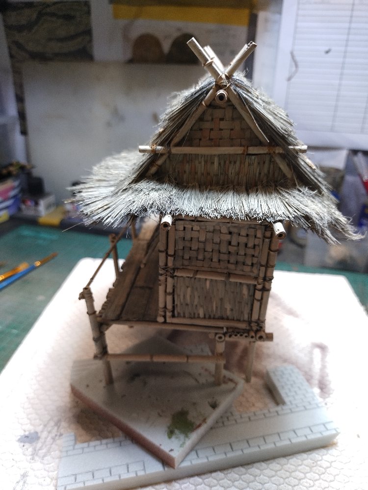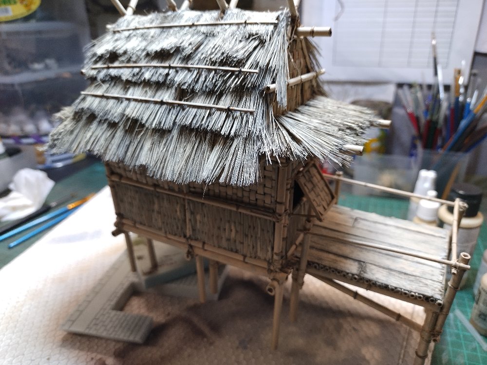 For a new diorama project, I builed a bamboo hut. The material was bamboo, wire, brush bristles and cardboard. The idea for the hut, I saw in an youtube video.
