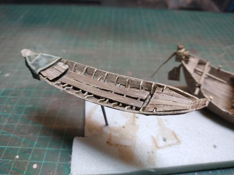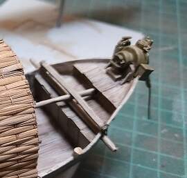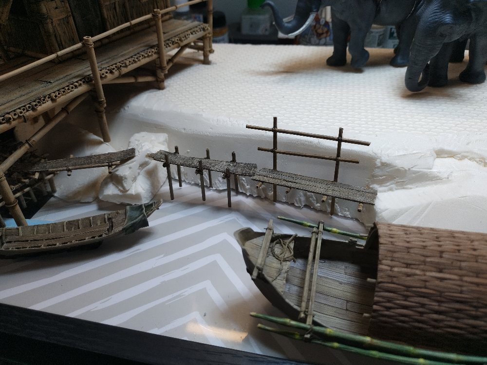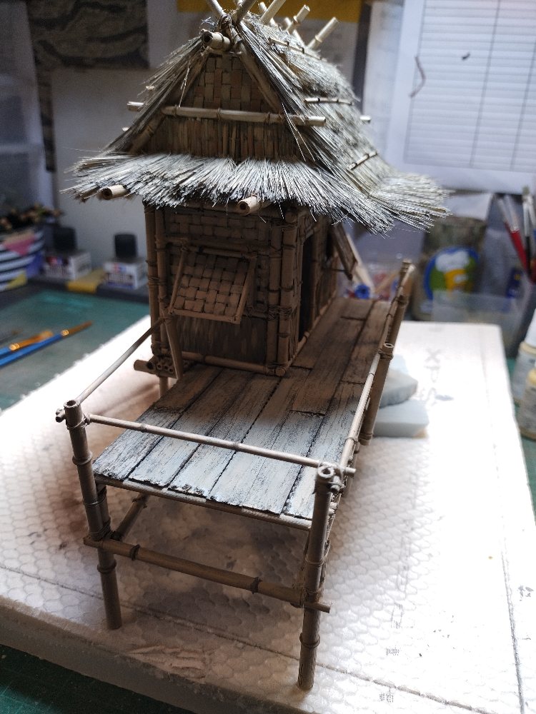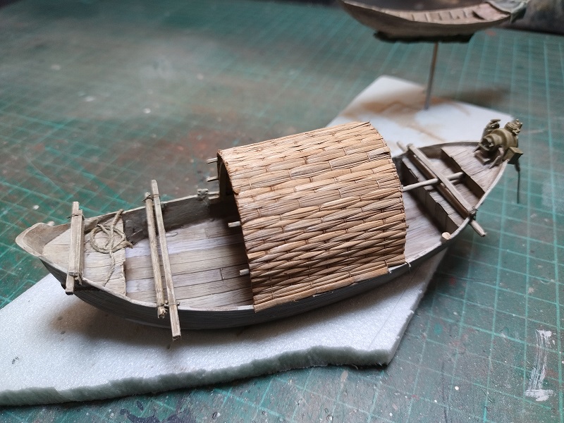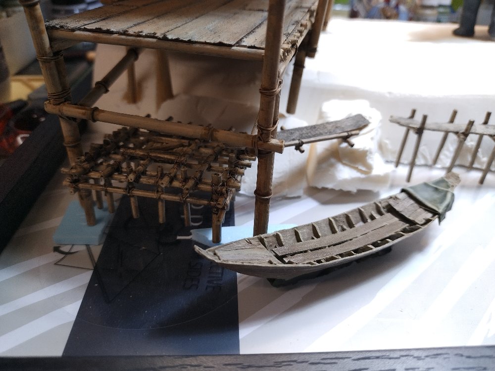At the sampan, the motor needs his metal color. Also some bamboo sticks at the sides are missing. They not finish. The bamboo roof, I changed from plastic to a piece from an old bamboo beach mat.