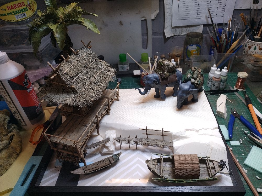 The sampan and the boat are from Verlinden and Paracel Miniatures.