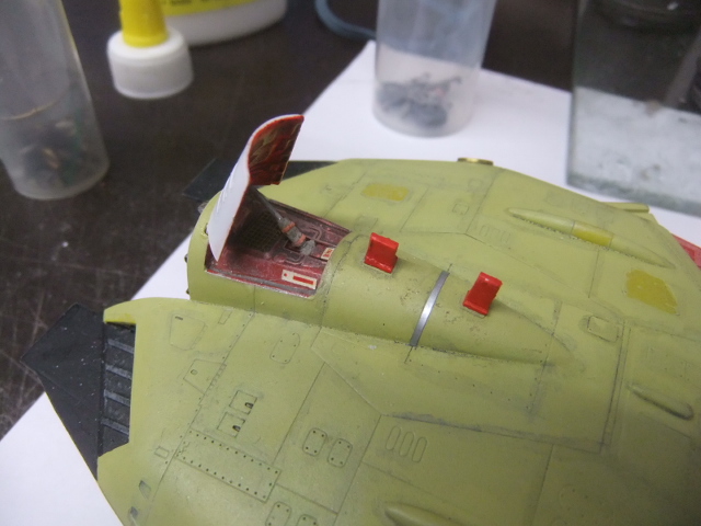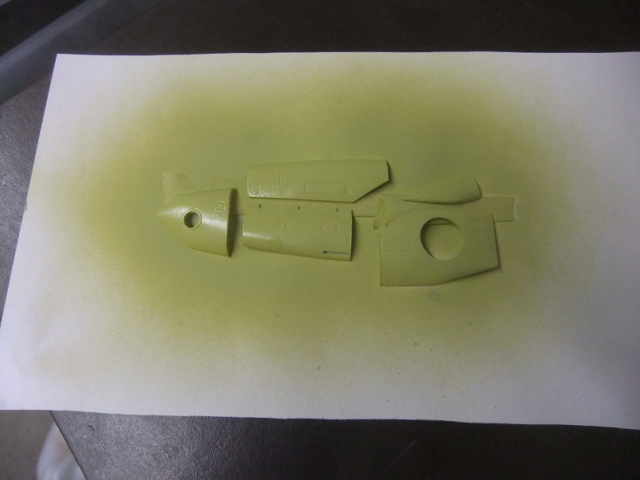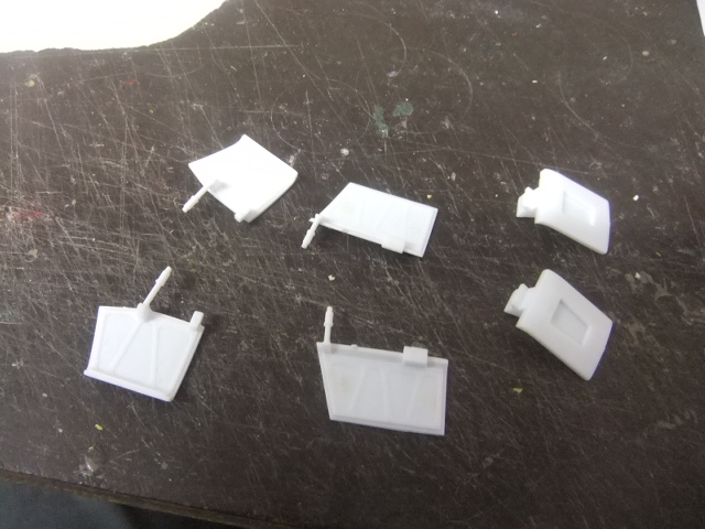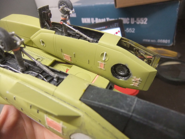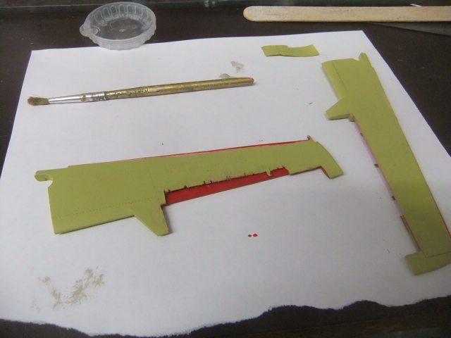 (OCT 13th)…Today I I glued the trolley to the fuselage mid-section, painted the slats and started to work on the engine access doors !